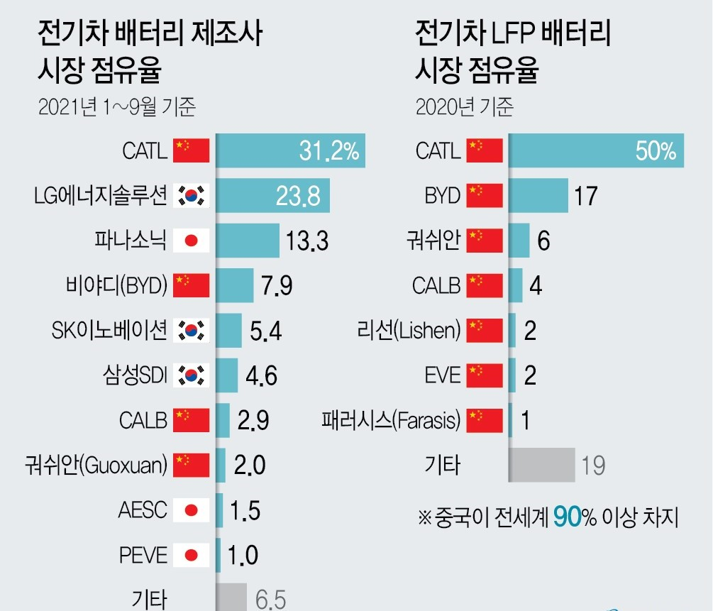 *LFP(LiFePO4) : 양극소재로 리튬, 인산, 철을 사용한 배터리