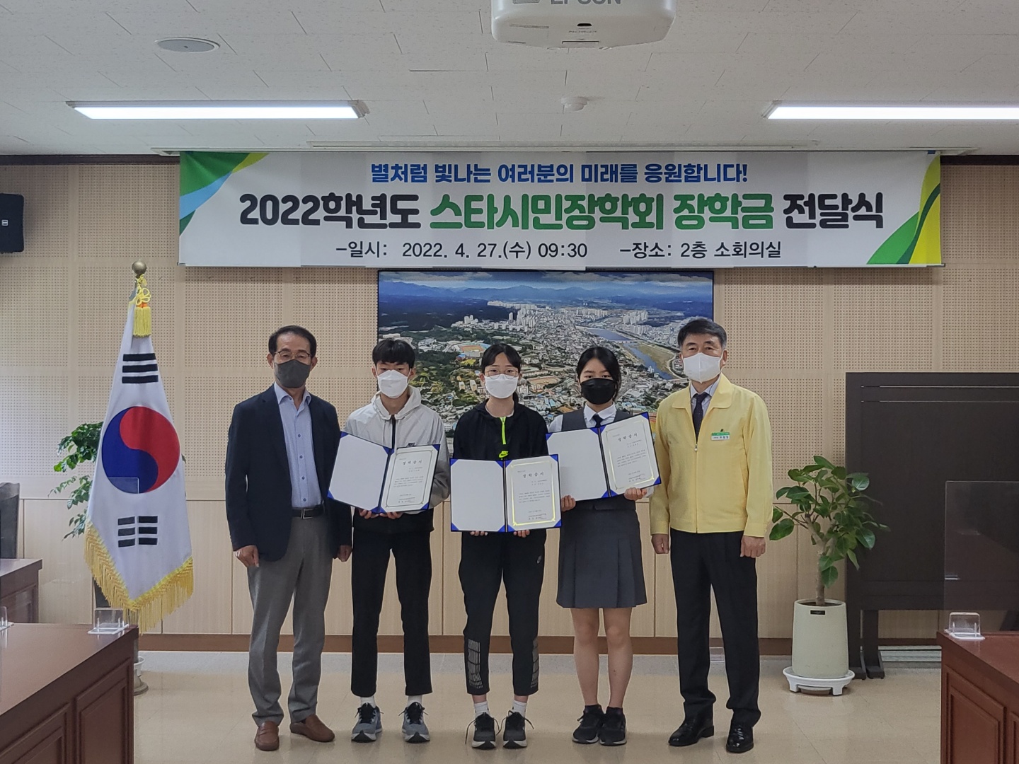 영천스타시민장학회(회장 정식렬)는 4월 26일 영천교육지원청에서 중·고등학생 5명에게 장학금과 장학증서를 전달했다.