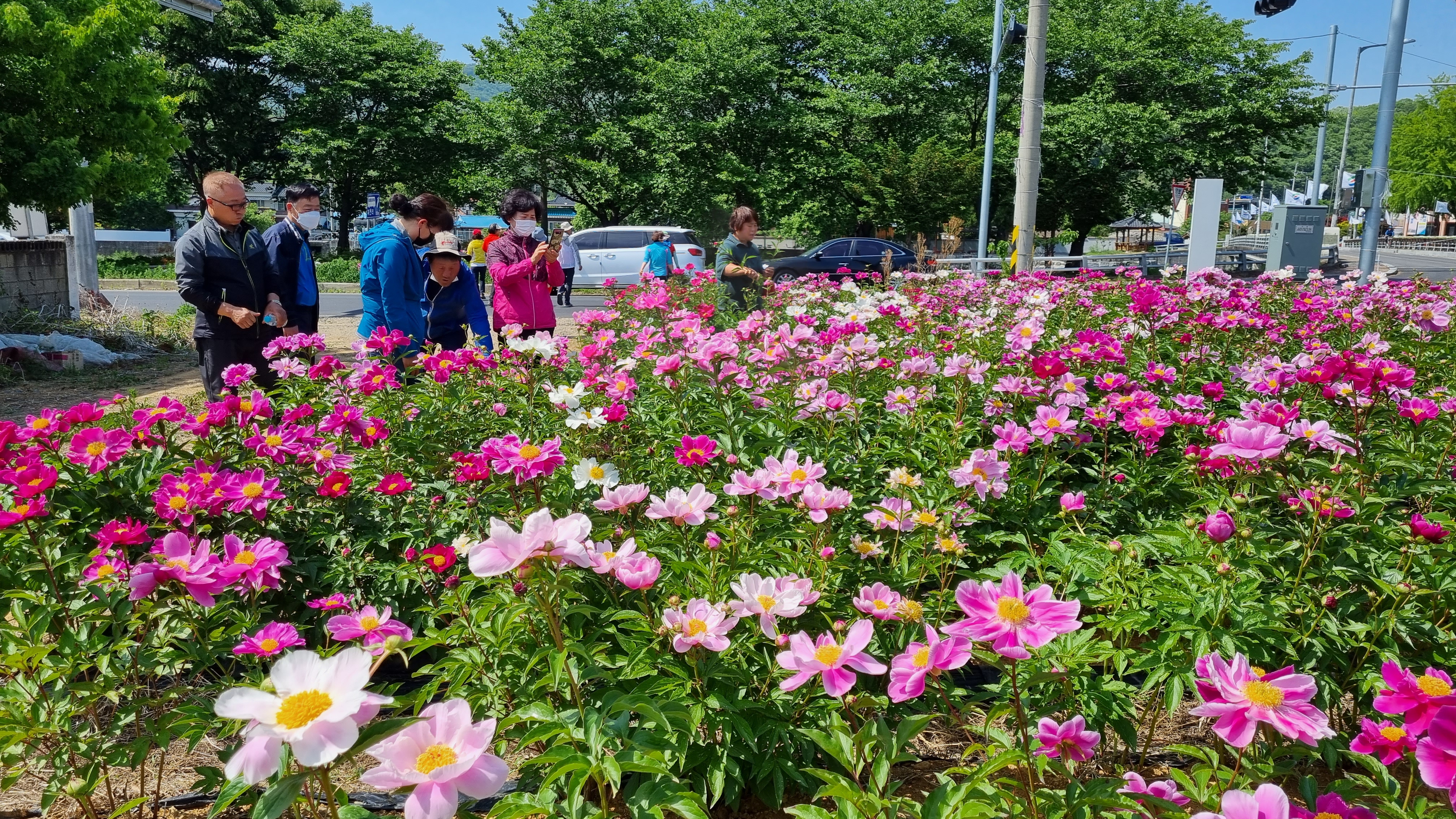 작약꽃 만발, 지나는 방문객 기념사진
