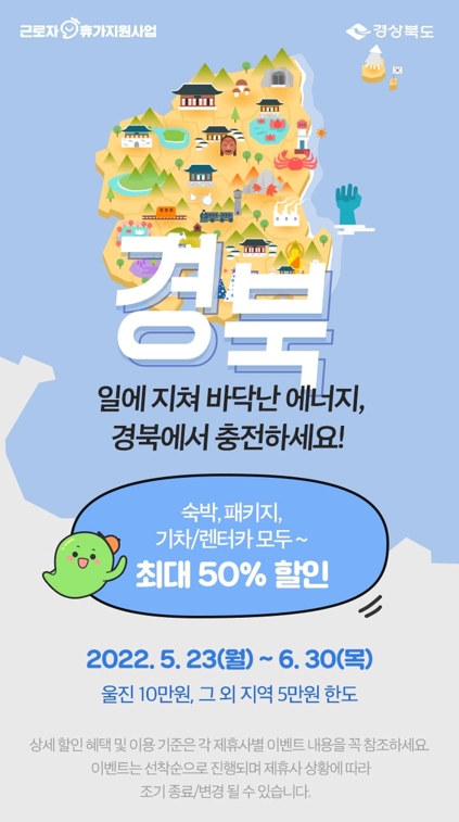이에 지원한도를 기존의 절반인 5만원으로 낮추는 대신, 보다 많은 근로자가 경북에서의 휴가를 즐길 수 있도록 구성했다.