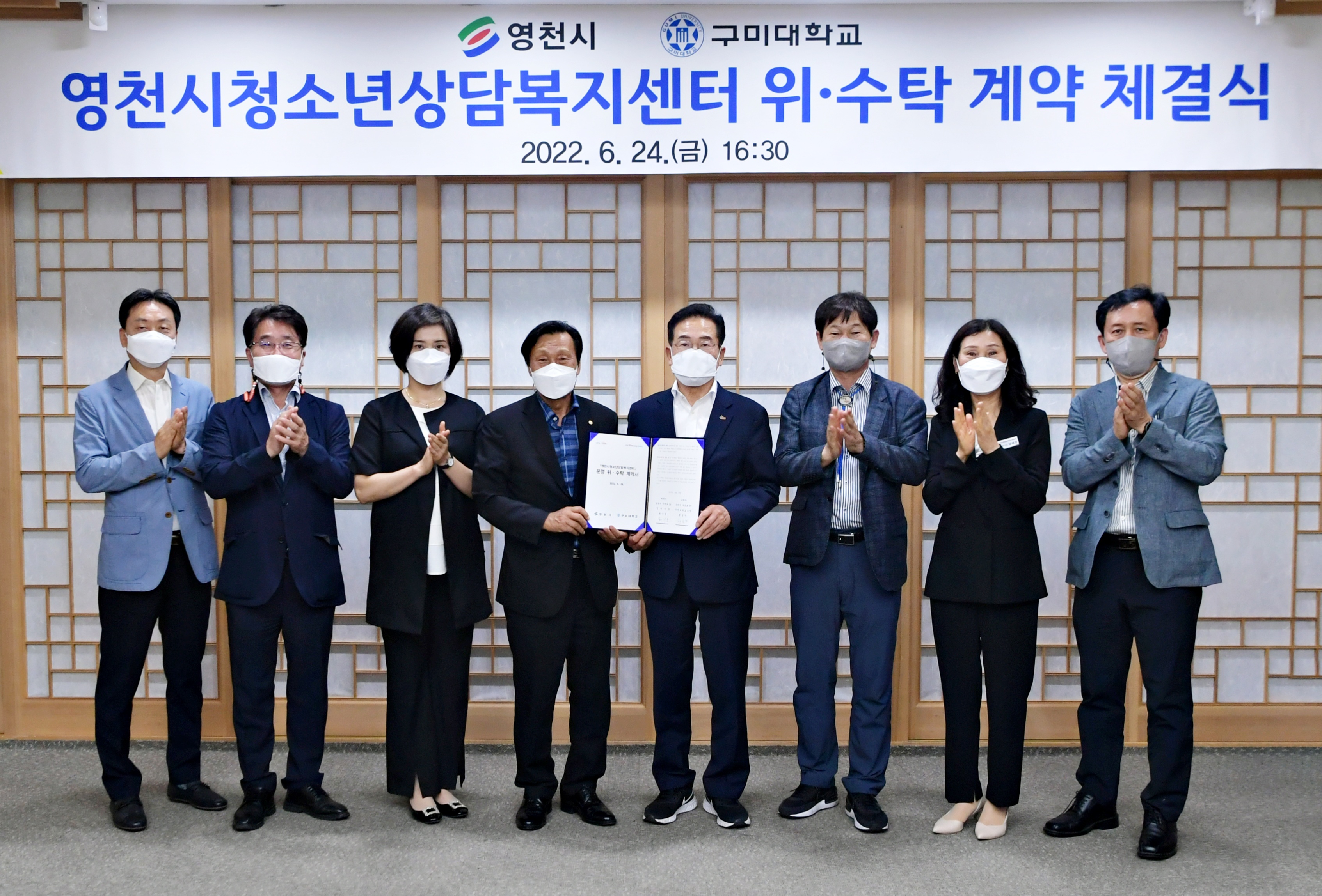 영천시는 구미대학교와 6월 24일 영천시 청소년상담복지센터 위탁운영을 위한 위·수탁 계약 체결식을 개최했다.