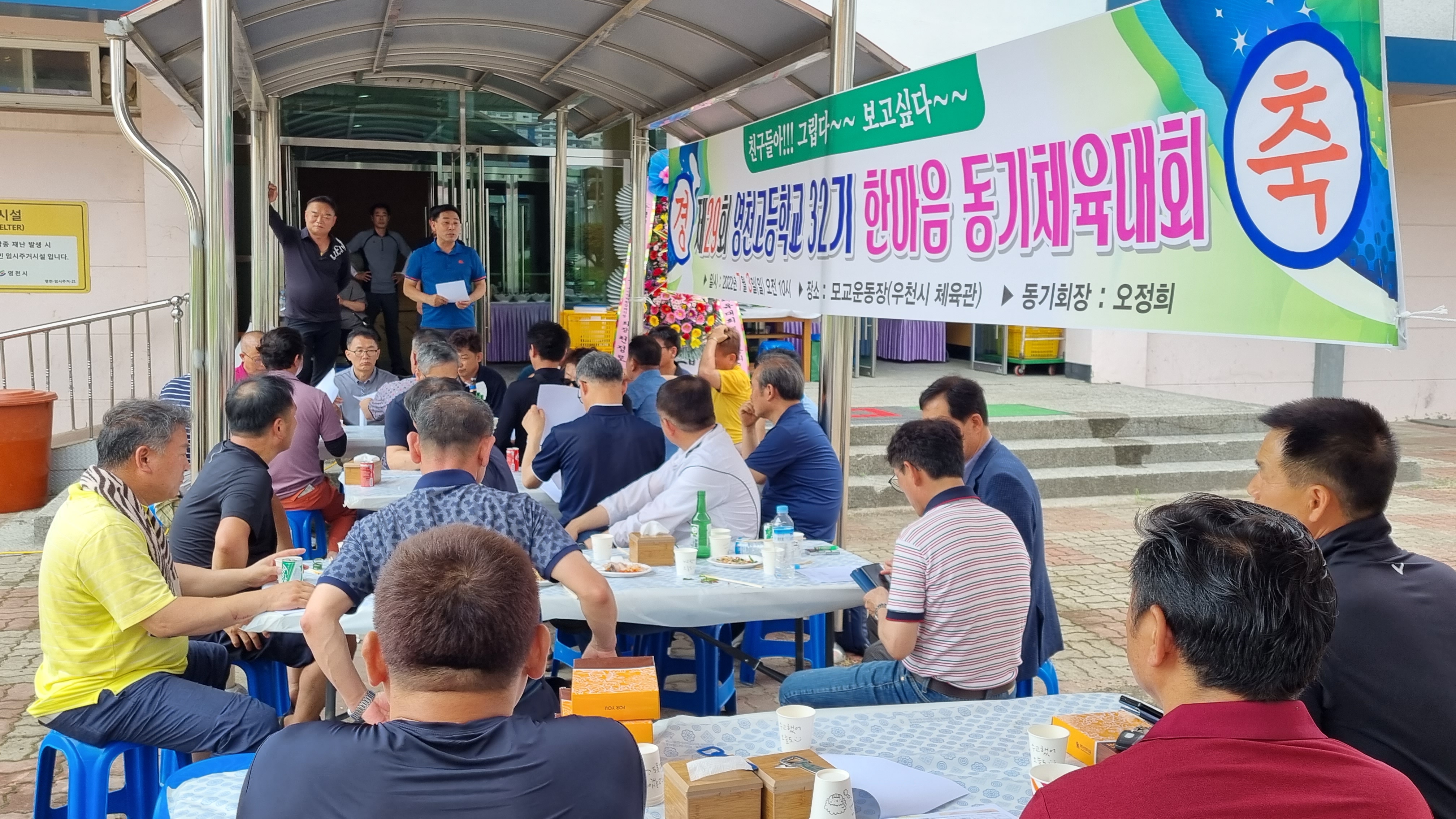 제29회 영천고 32동기회(회장 오정희) 한마음 체육대회가 7월 3일 오전 모교체육관에서 열렸다. 코로나19로 인해 그동안 체육대회를 개최하지 못하고 3년 만에 개최하는 이번 행사에는 대구 울산 포항 등지의 동기들과 영동고 동기(회장 이동율)들이 많이 참석해 자리를 빛냈다.