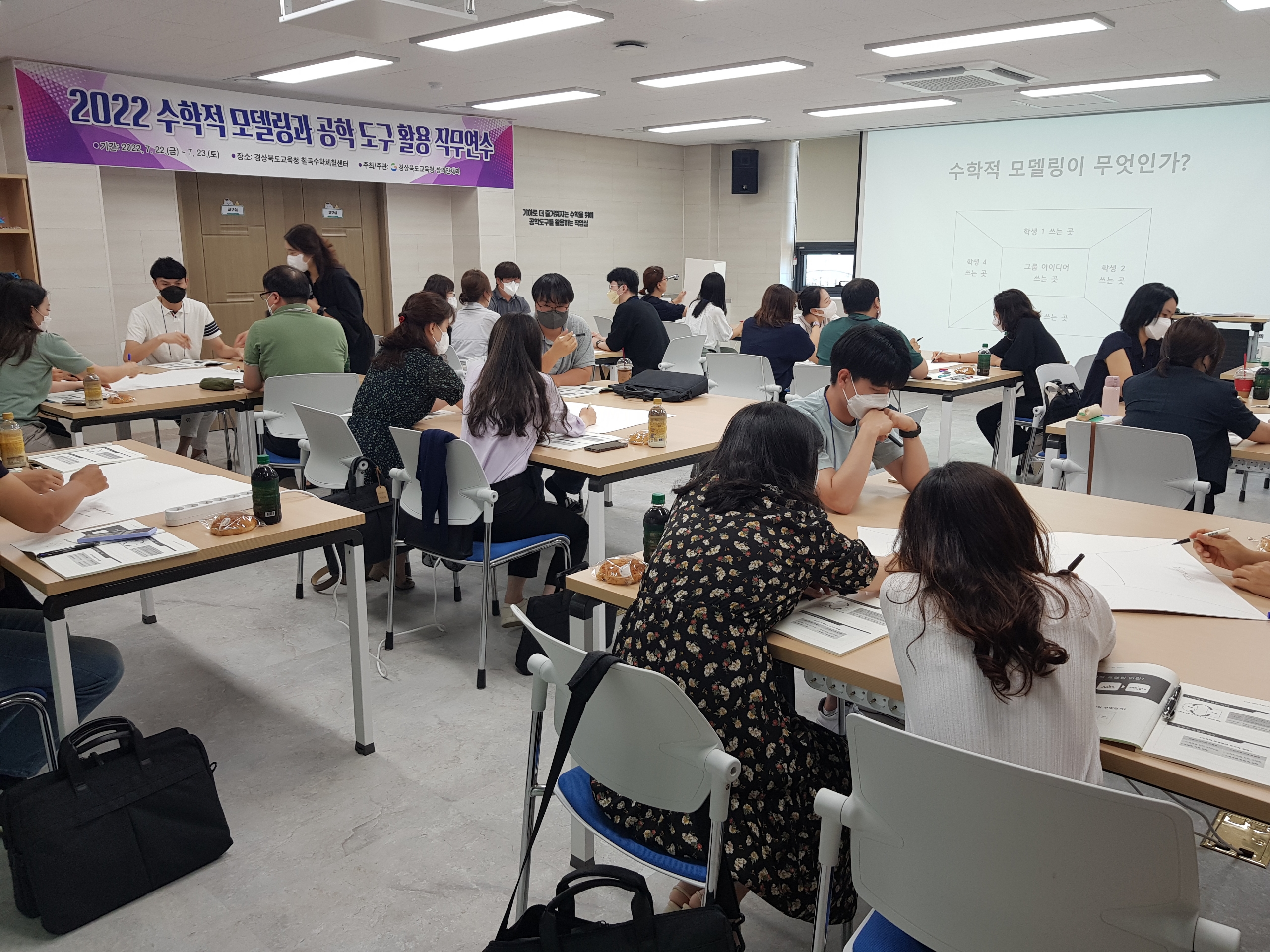 경북교육청(교육감 임종식)은 지난 22()부터 23()까지 양일간 칠곡수학체험센터에서 중등 수학교사 30명을 대상으로수학적 모델링과 공학 도구 활용 직무연수를 실시했다고 밝혔다.