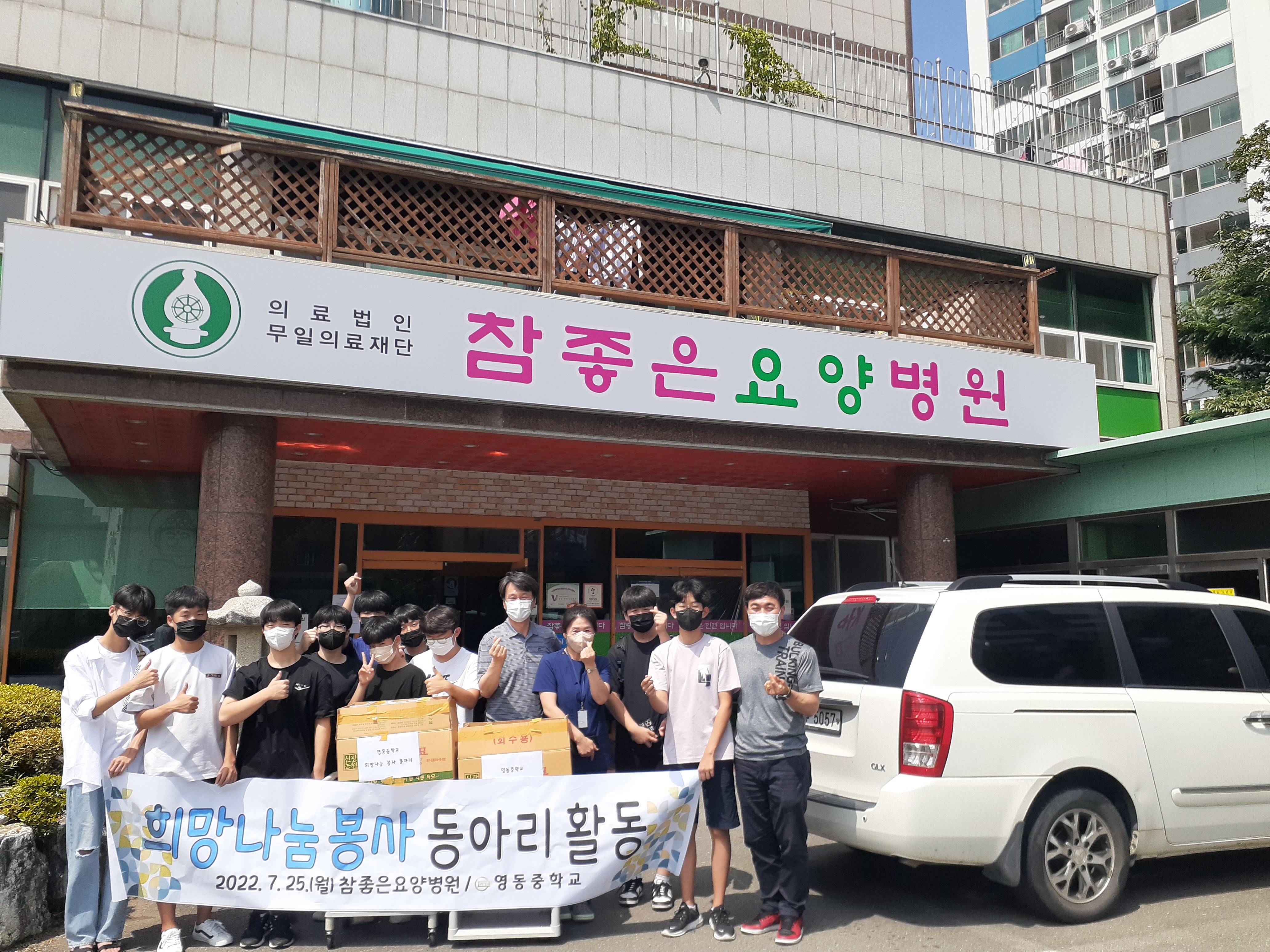영동중학교(교장 김영순)는 7월 26일 학생 12명을 대상으로 사랑·나눔·베풂을 실천하여 학생들이 바른 인성으로 건강하게 자랄 수 있도록 희망나눔 봉사동아리 활동을 전개했다.