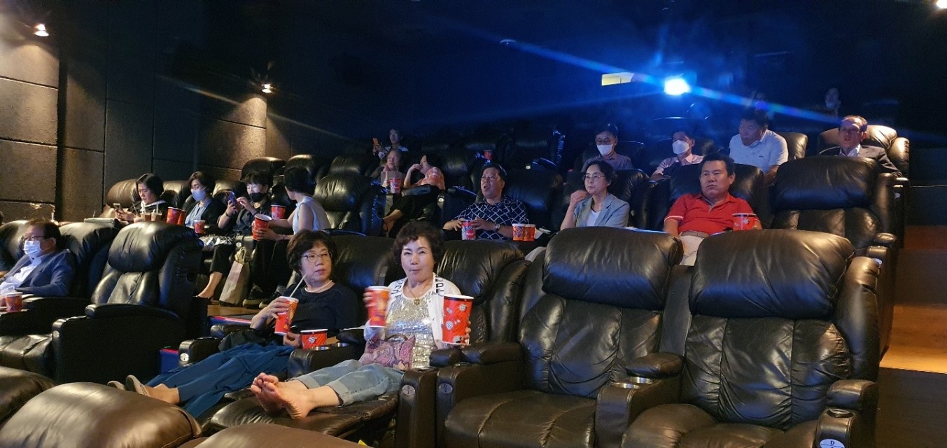 재대구영천향우회(회장 오종수)는 이색적인 월례회를 개최해 눈길을 끌고 있다.재대구영천향우회는 7월 월례회를 극장에서 개최하고 일반적으로 기존 식당에서 하는 방식을 떨쳐버렸다. 또 무더위도 함께 날려버려 회원들의 호응도 상당히 높았다.회원들은 25일 롯데시네마 만경관 4층 한 개 영화관 전체(수용인원 70명)를 빌려, 향우회원들만 관람하는 시간을 가졌다.