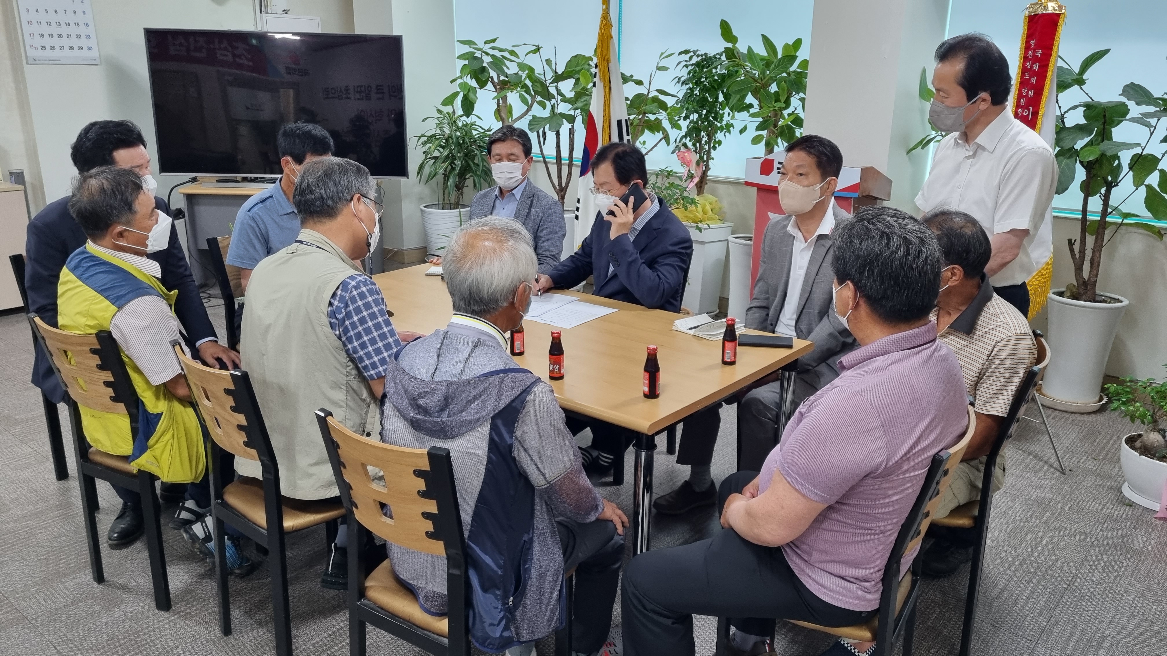 옆에서 민원을 듣고 있던 이만희 의원은 농어촌공사 담당자에 바로 전화해 “주민들의 민원 사항을 잘 검토하고 있다고 한다. 기본설계를 10월까지 하고 설계가 마무리 되면 데크사업을 할 계획이다. 권기한 시의원도 전화로 주민들의 민원을 해결하는 쪽으로 해야한다는 말을 해 데크사업을 추진하고 있다고 한다는 말을 전한다.”고 주민들에 통화 내용을 설명했다.