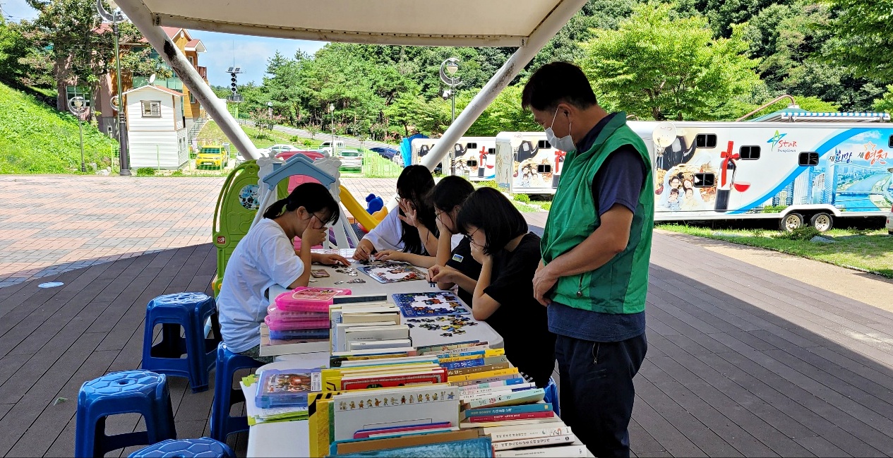 본격 무더위가 시작됨에 따라 치산 관광지를 찾아오는 지역주민과 피서객들을 대상으로 소설·자기계발·어린이 도서를 포함한 다양한 장르의 도서 300여권을 비치하여 대출하고 가족 단위의 관광객들이 많이 방문할 것으로 예상됨에 따라 어린이 장난감 이용 및 그림 그리기 체험 프로그램도 진행하여 독서 문화 확산 및 건전한 여가문화 정착에 앞장섰다.