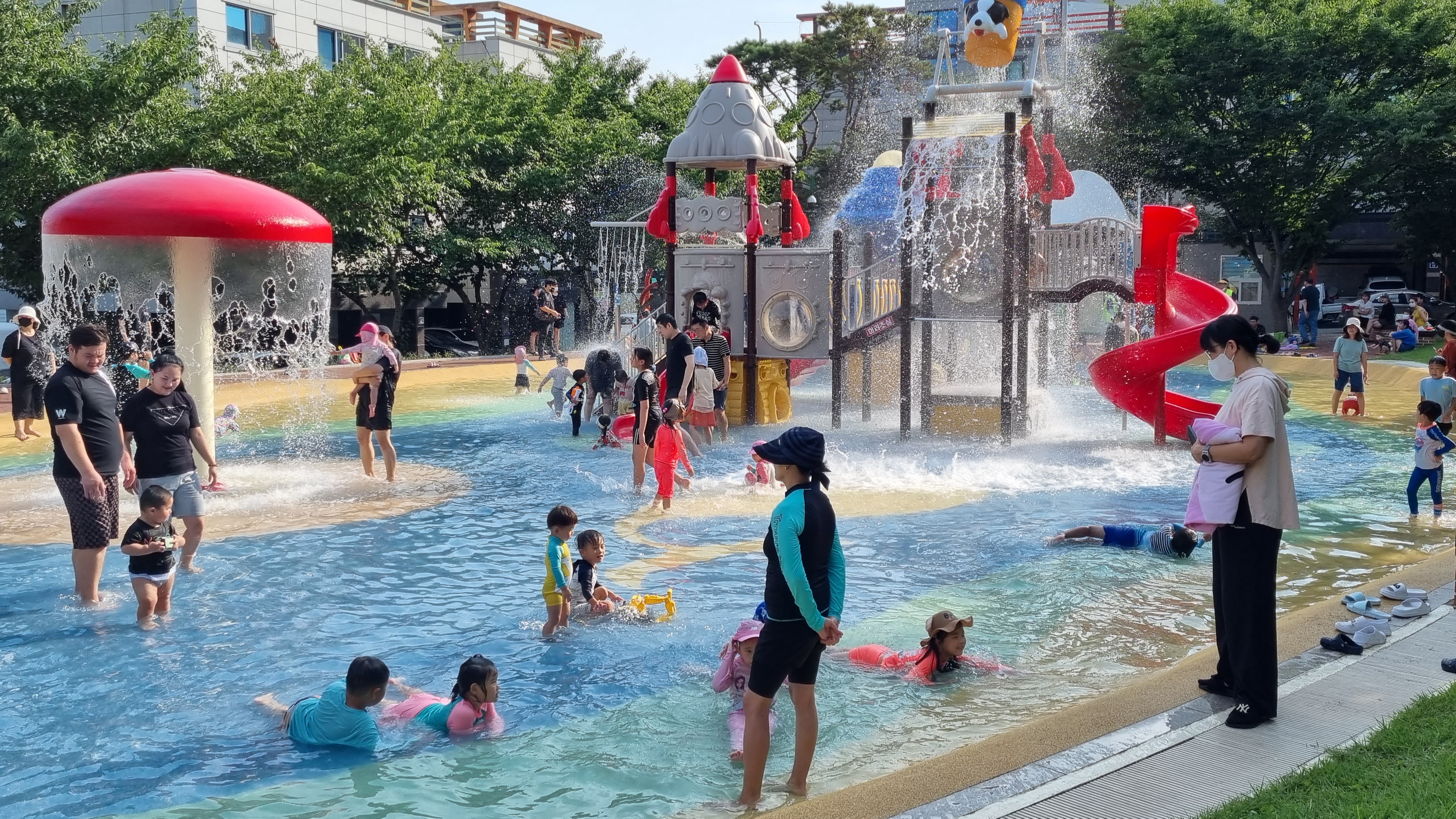 2곳 물놀이 공원은 삼산아파트 앞 문내외2 물놀이공원과 창신아파트 옆 망정3 물놀공원이다. 방학을 맞아 평일에도 어린이들이 많이 찾아와 물놀이를 즐기지만 주말에는 발 디딜 틈이 없을 정도로 시민들이 몰렸다.