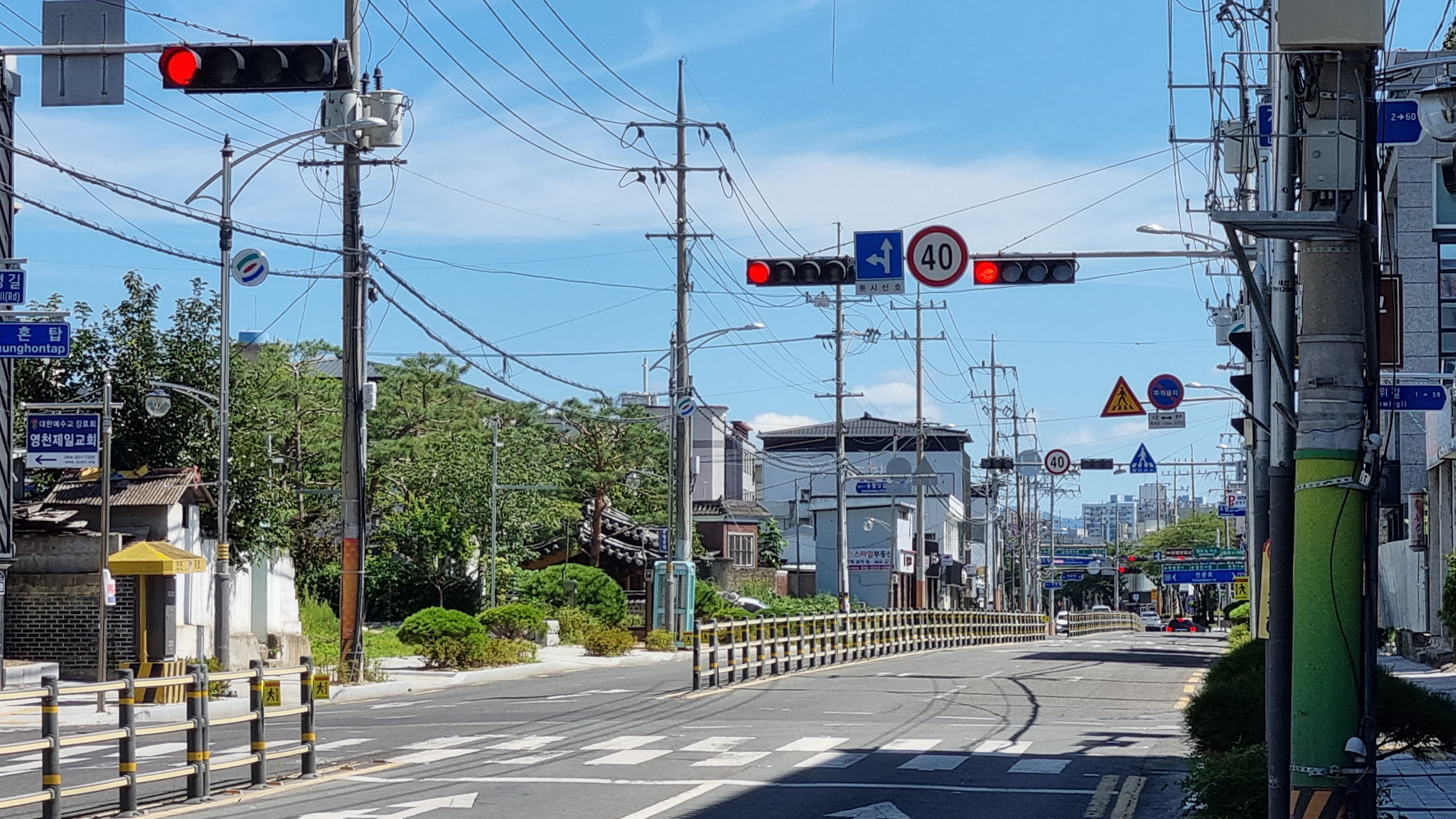 시내 중심가 도로에 중앙분리대(도로 횡단 금지 휀스)를 모두 설치했으나 이제는 흉물로 전락했다는 인근 주민들의 말처럼 중앙분리대에 대한 새로운 정책이 필요하다.