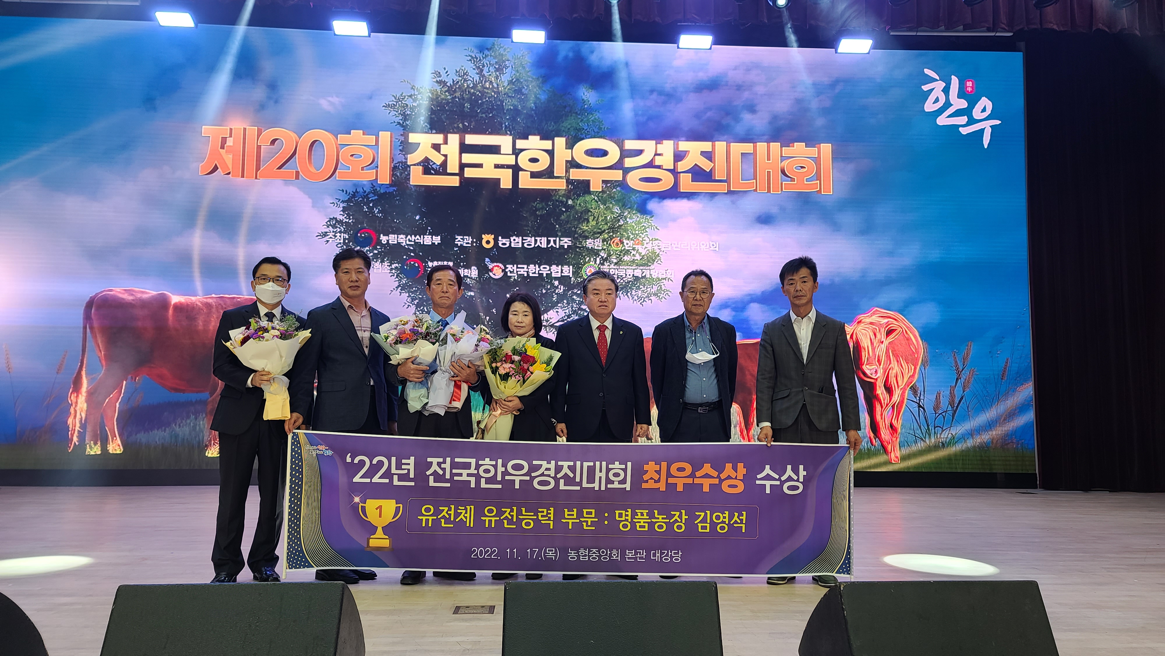 경상북도는 17일 농협중앙회 본관 대강당에서 열린 『2022 전국 한우경진대회』에서 총 6개 부문 중 3개 부문에서 최우수상을 수상해 경북 한우의 우수성을 알렸다.