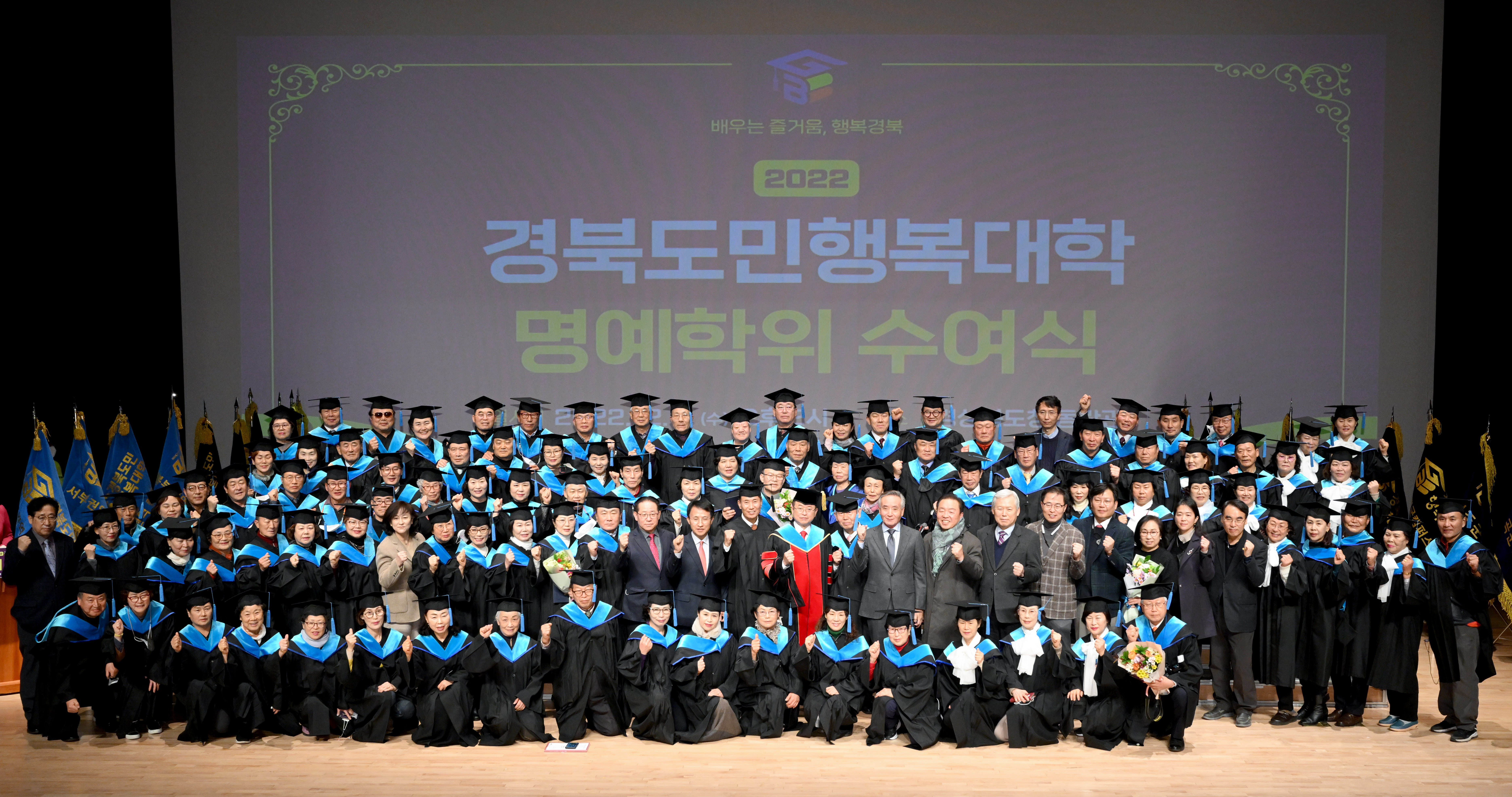 경상북도는 7일 도청 동락관에서 경북도민행복대학 19개 시군캠퍼스 및 4개 권역 대학캠퍼스 졸업생 등 600여명이 참석한 가운데 명예학위수여식을 개최했다.