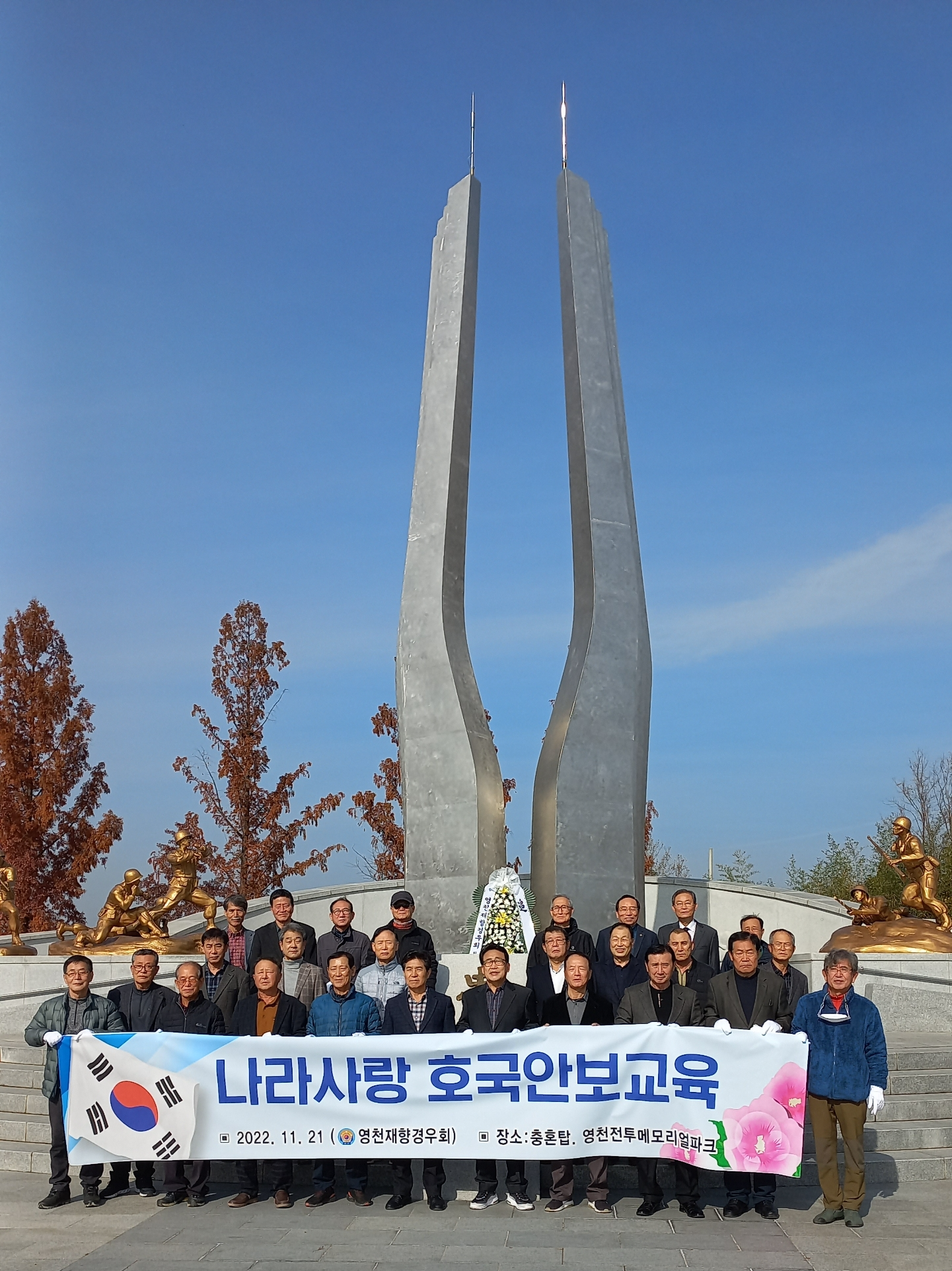 영천재향경우회(회장 최종해)는 11월 21일 영천전투메모리얼파크와 충혼탑에 나라사랑 호국안보교육 시간을 가졌다. 회원들은 메모리얼파크에서 영천전투교육을 들은 뒤 충혼탑에서 헌화 분향 후 호국영령의 고귀한 뜻을 되새겼다.