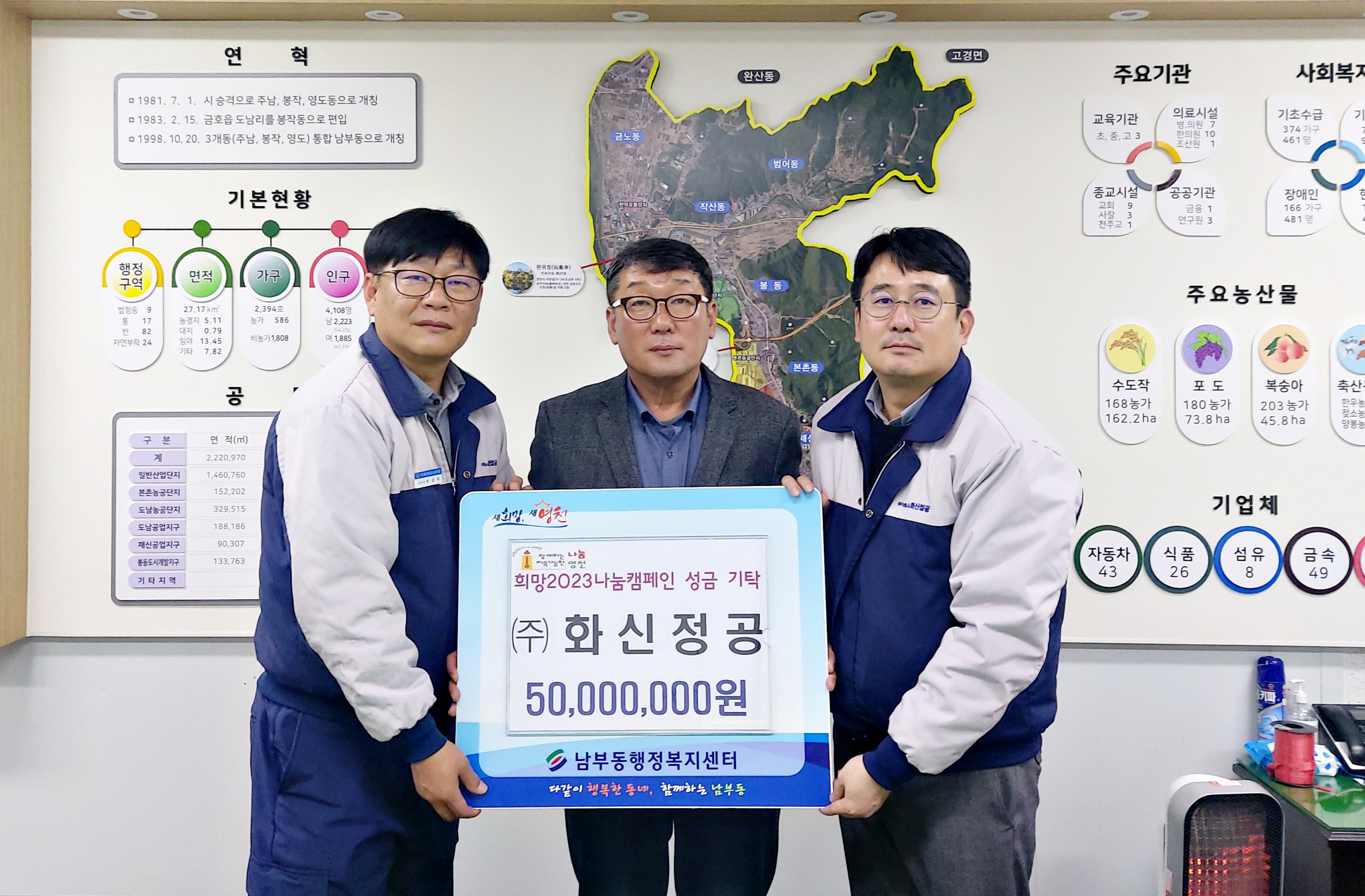 ㈜화신정공(대표 정서진)은 12월 12일 영천시 남부동 행정복지센터를 방문해 ‘희망2023 나눔캠페인’ 성금으로 5000만원을 기탁했다.