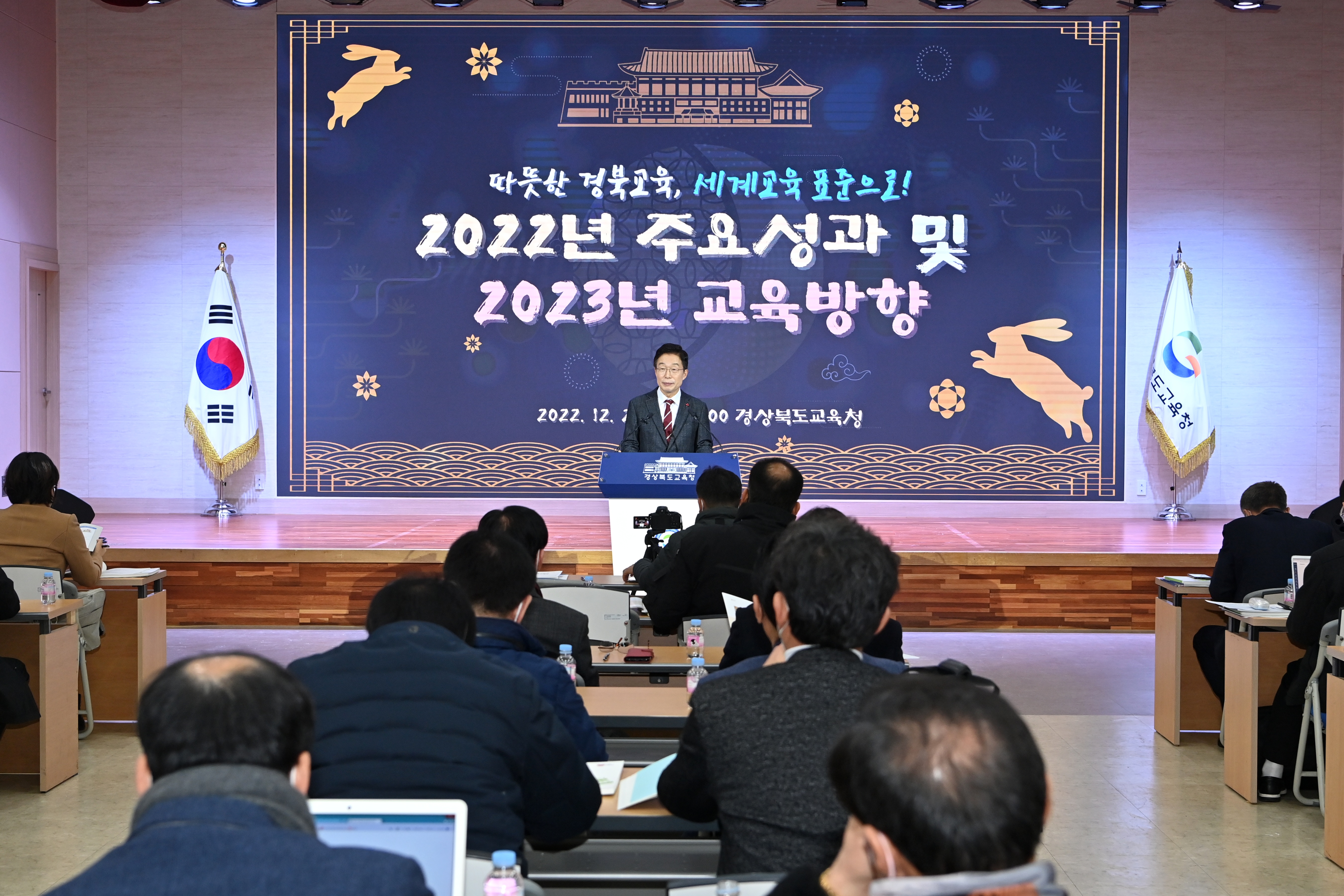 경북교육청(교육감 임종식)은 28일(수) 웅비관에서 출입기자를 대상으로‘따뜻한 경북교육, 세계교육 표준으로 도약’이라는 주제로‘2023 경북교육 추진 방향’을 설명하는 새해맞이 기자회견을 가졌다고 밝혔다.