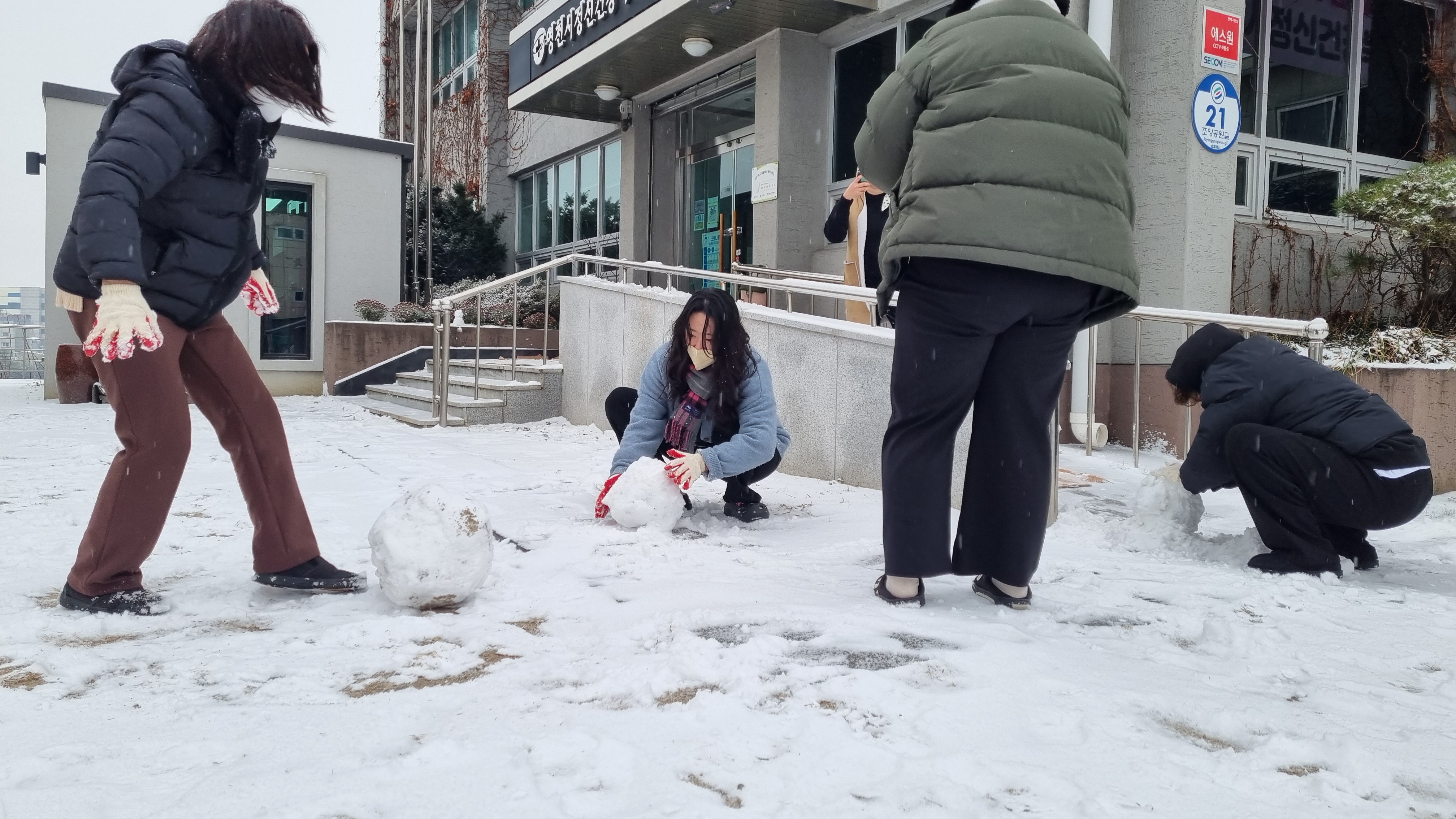 젊은이들은 오랜만에 만지는 눈이라 눈사람을 만드는 등 동심으로 돌아가 즐거운 시간을 보내기도 했다.