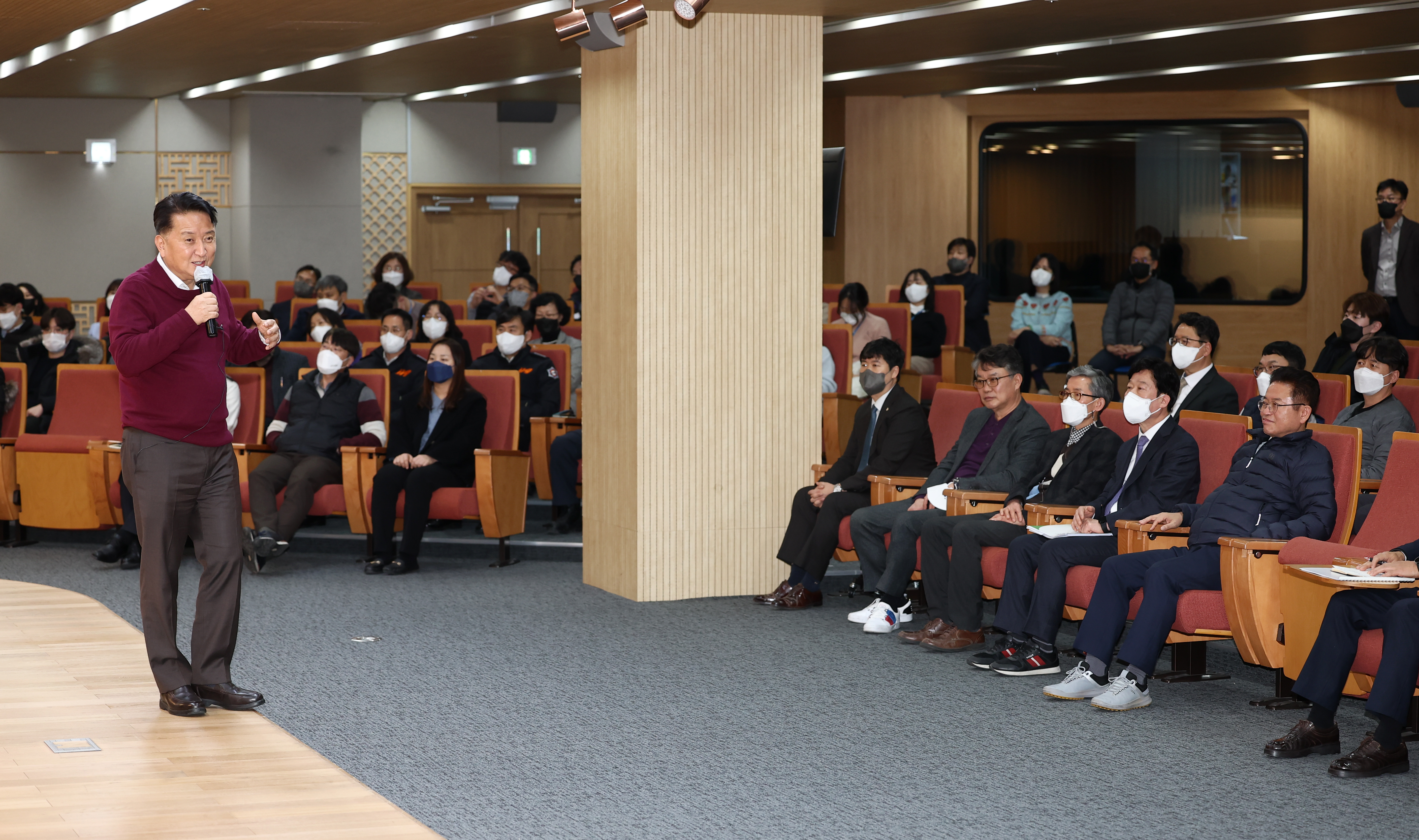 이후 김영환 충북도지사는 ‘변화의 시작, 아이디어로 승부한다 – 트리플악셀 충북’이란 주제로 도청 직원들을 대상으로 특강을 가졌다.