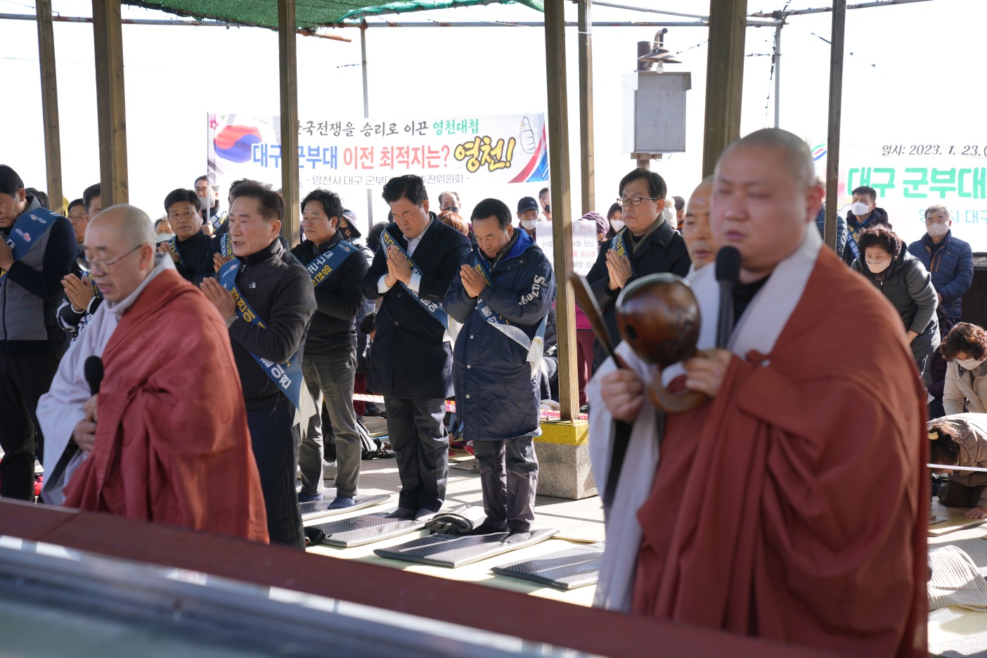 영천시 대구 군부대 유치 추진위원회(공동위원장 박봉규, 정서진)는 23일 계묘년 새해를 맞아 최기문 시장, 이만희 국회의원, 하기태 시의장과 시의원들을 비롯한 대구 군부대 유치 추진위원 등 150여명이 팔공산 갓바위를 찾아 대구 군부대 유치 성공을 위한 민․관 한마음 소원 성취 기원 행사를 가졌다.