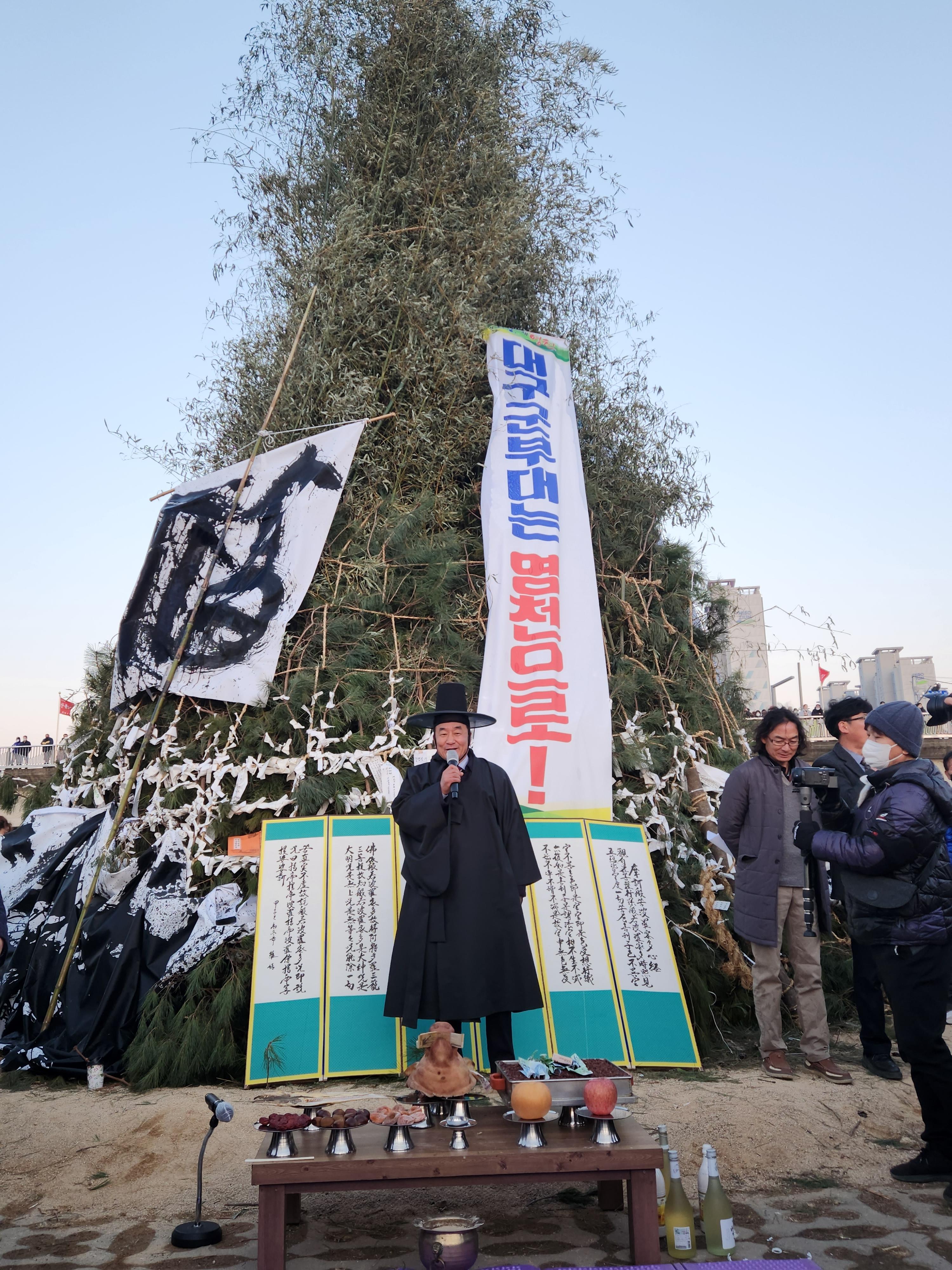 또한 이날 행사에서는 명주농악보존회의 풍물놀이와 지역 전통문화인 곳나무 싸움놀이가 펼쳐지고 서예가 박세호씨의 올해 신년 화두인 ‘적토성산’ 퍼포먼스, 아리랑태무시범단의 태권무 공연도 선보였다.