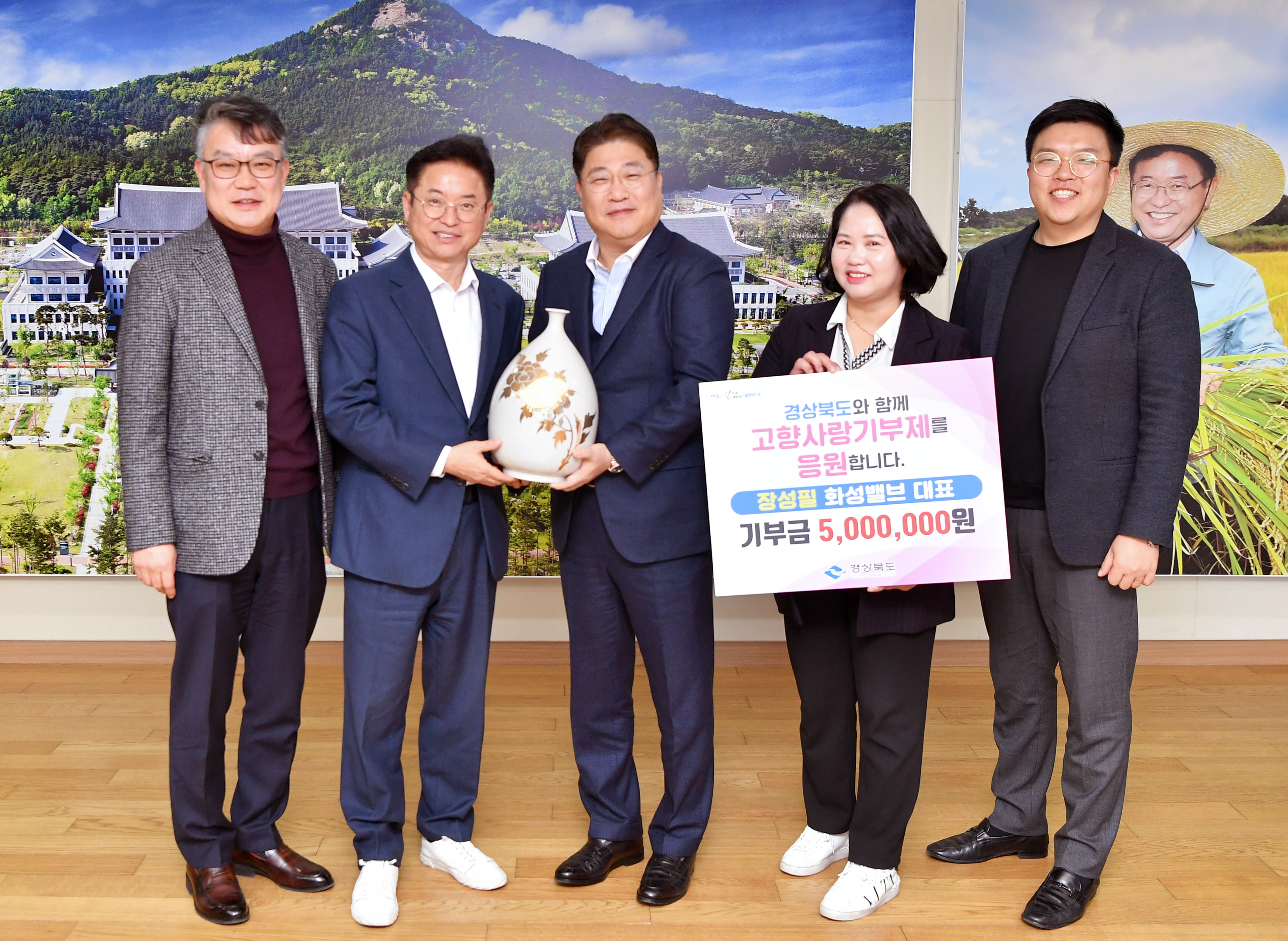 지난 7일 경북도는 화성밸브 장성필 대표가 경북도를 찾아 고향사랑기부금 500만 원을 전달했다고 밝혔다.