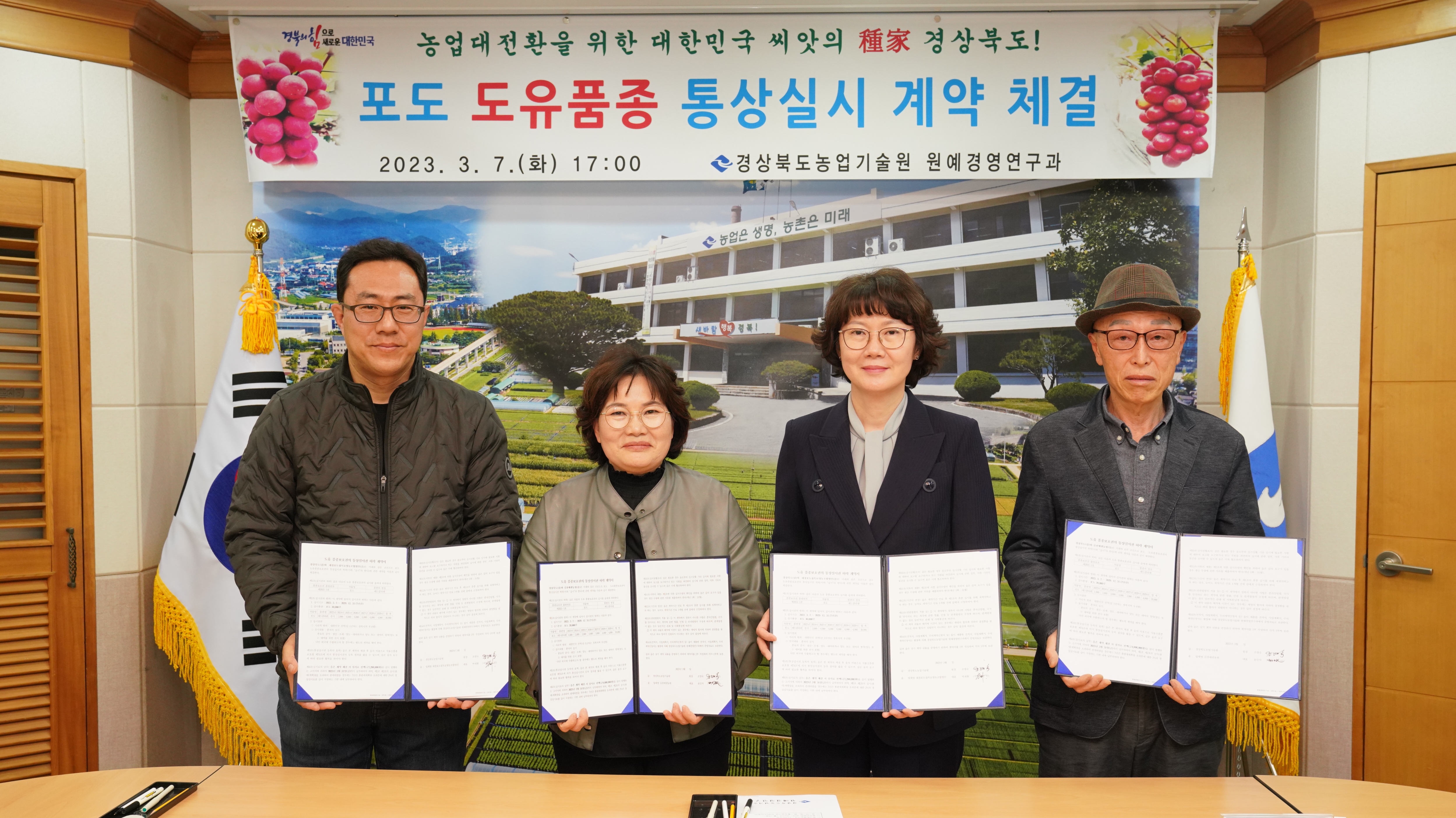 조영숙 경북도 농업기술원장은 “이번 포도 신품종의 통상실시 계약을 계기로 농업기술원은 국내 묘목업체들과 협력해 소비자가 좋아하고 수출경쟁력 있는 우수한 국산 품종을 지속적으로 만들고 보급하는데 최선을 다하겠다”라고 밝혔다.