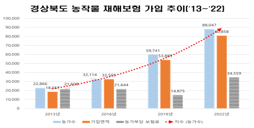 경북도는 2013년부터 2022년까지 지난 10년간 농작물재해보험사업의 성과를 분석해 발표했다.