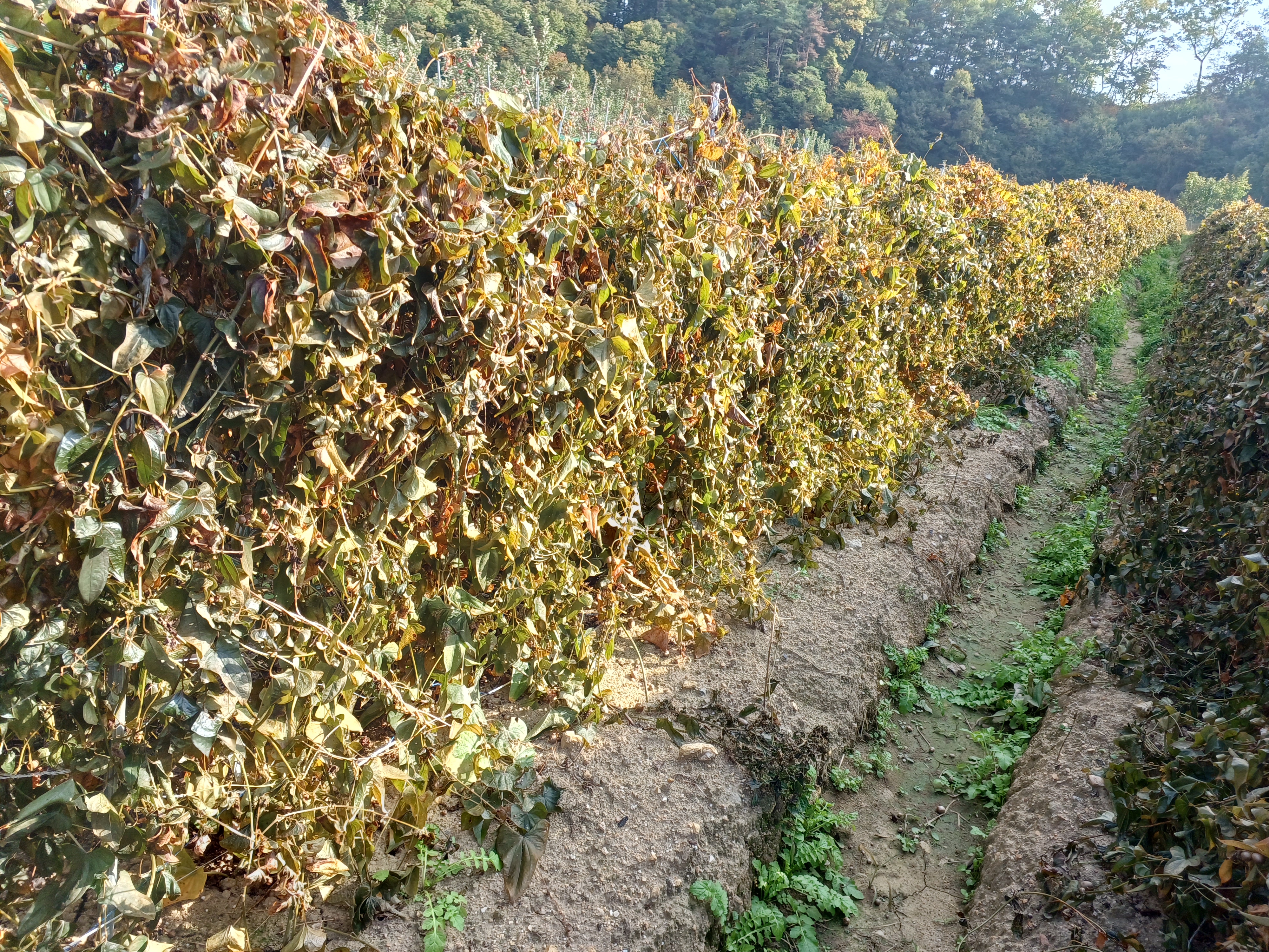 수확기에 마 줄기와 뒤엉킨 생분해망을 그대로 수거해 파쇄 처리하면 자연분해가 빨라지고, 퇴비화가 가능하다.