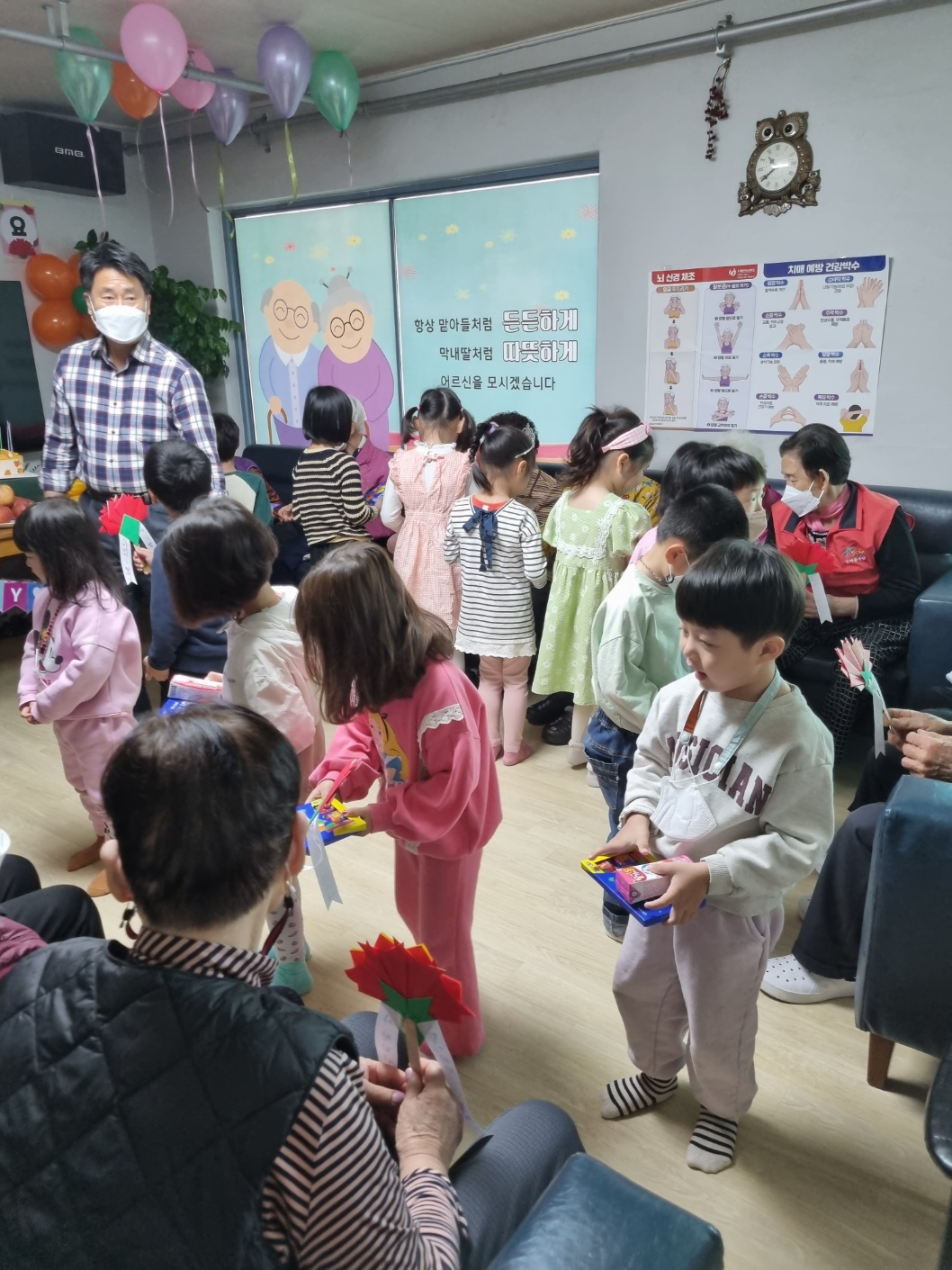 꿈을빚는 어린이집(원장 이숙형) 어린이들은 8일 어버이날을 맞아 화룡동 경로당을 방문하고 어버이은혜 감사의 마음으로 카네이션을 어르신들 가슴에 달아드렸다. 어르신들은 “어린 손자 손녀 들이 어른들을 생각하는 마음이 너무 아름답다.”고 입을 모았다.