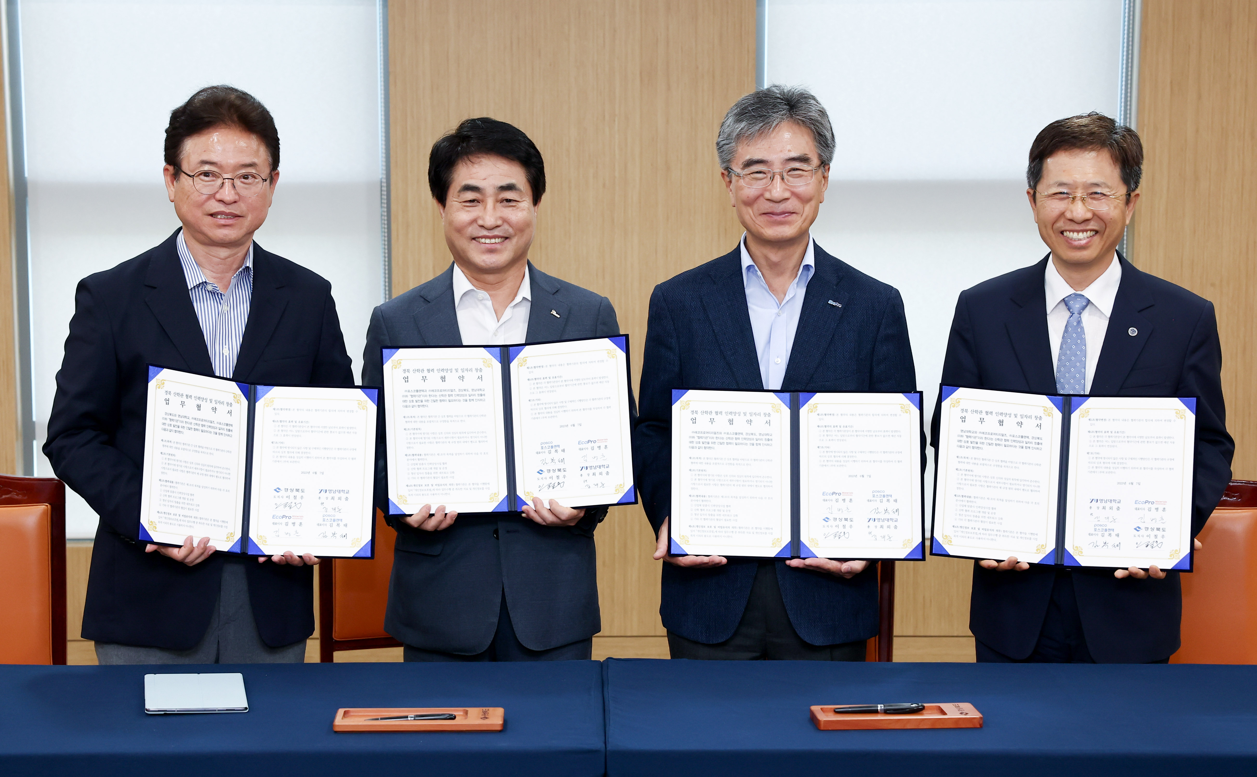 경북도는 7일 도청에서 경북도-영남대-에코프로머티리얼즈-포스코플랜텍과 “경북 산학관 협력 인력양성 및 일자리 창출” 업무협약을 체결했다.