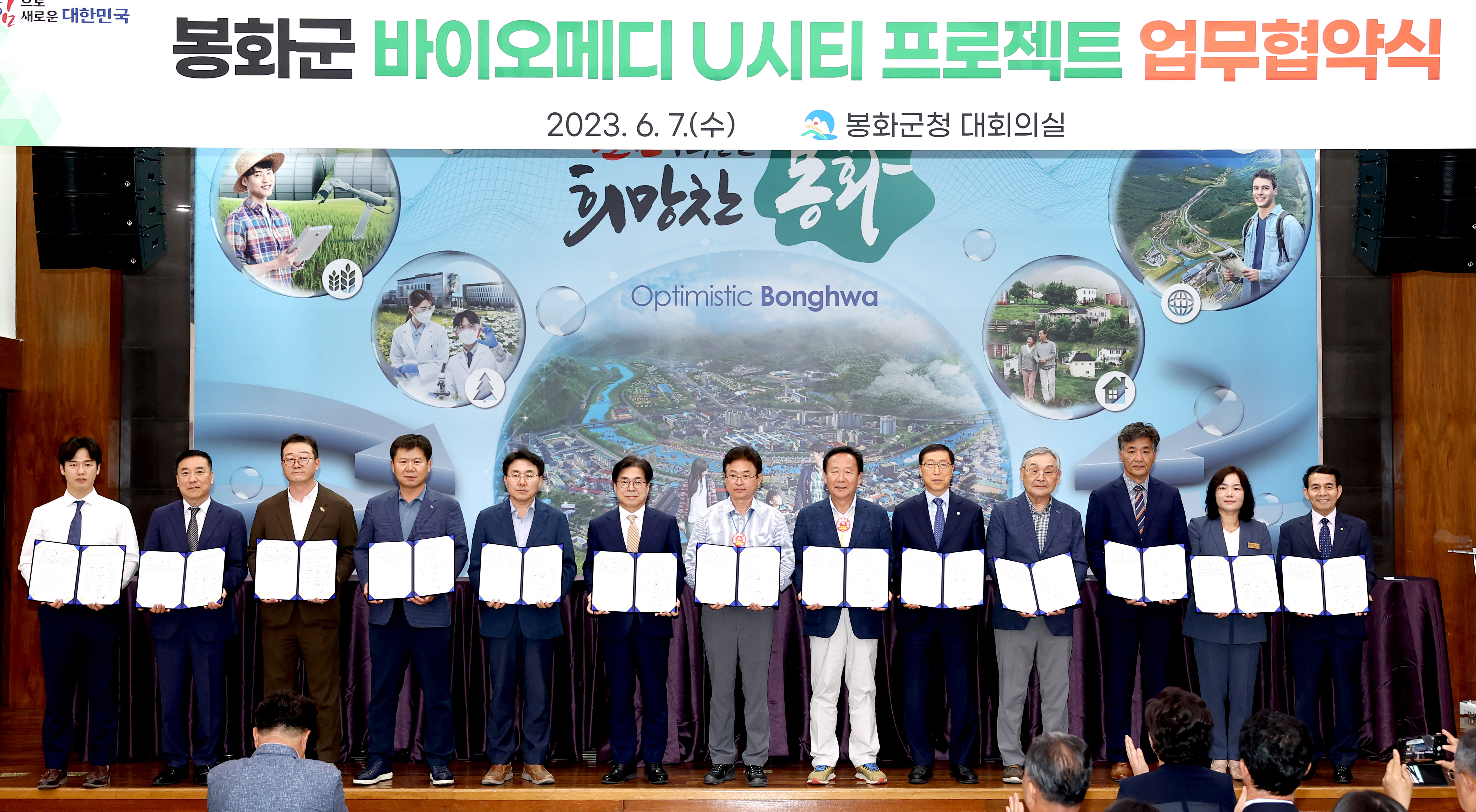 경북도는 7일 봉화군청 대회의실에서 대학과 기업, 고등학교가 협업해 추진하는 「바이오메디 U시티 프로젝트」 업무협약을 체결했다.