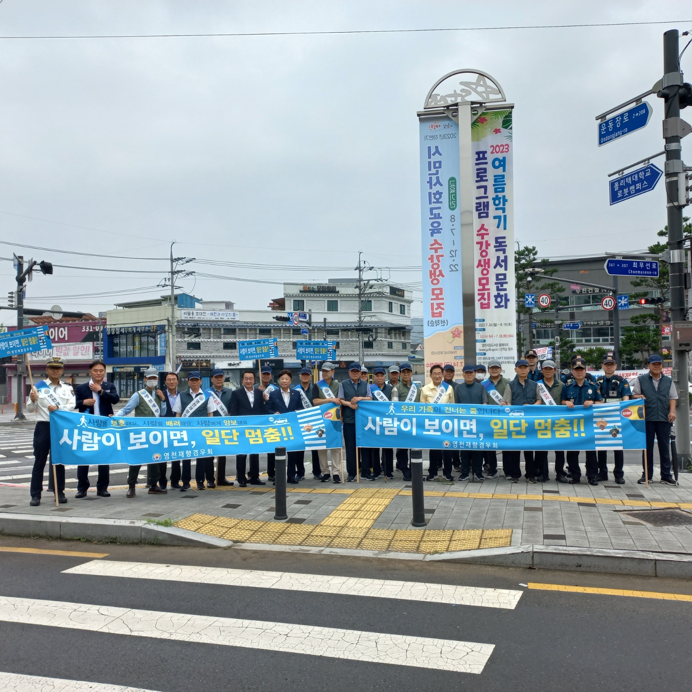 이날 캠페인에는 최기문 영천시장, 하기태 영천시의장, 조동희 영천재향경우회 자문위원장(대구경북사회공헌위원회장) 등이 동참해 캠페인의 의미를 실천하고 홍보했다. 최종해 회장은 “도로교통법 개정 등으로 시민들의 교통안전에 대한 인식 제고가 필요한 상황”이라며 “시민들이 교통안전에 대한 경각심을 갖도록 교통질서 확립을 위해 앞장서겠다.”고 말했다.