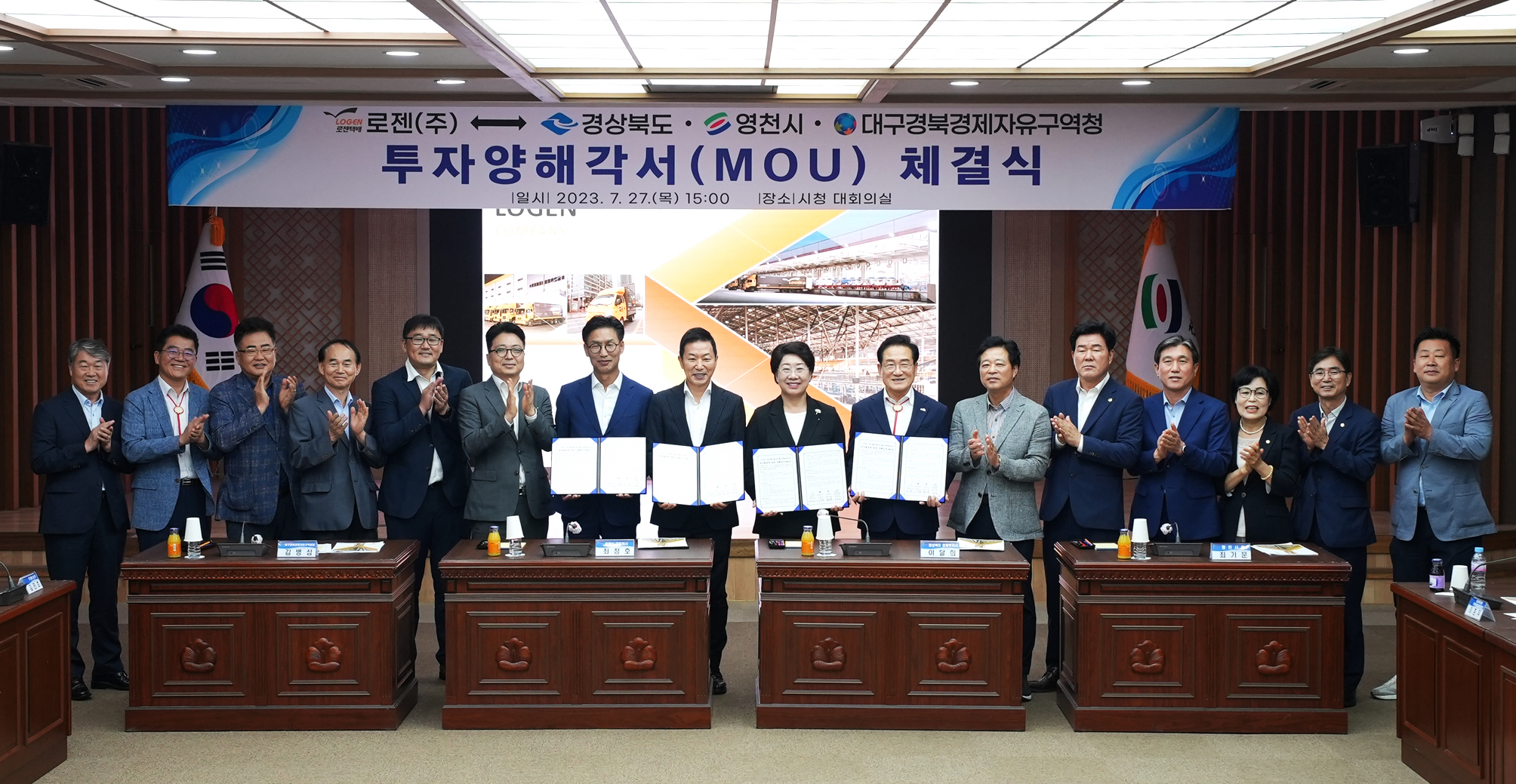 영천시가 영남권 통합물류의 중심지역으로 주목을 받고 있다. 국내 4대 택배전문기업 ‘로젠’이 영천시에 대규모 물류시설을 구축할 예정이다. 영천시는 총 8개의 고속도로 요금소가 연결된 대구경북의 교통중심지로 향후 대구경북신공항 개발로 국제공항이 근거리에 위치하고 있어 사통팔달 물류유통을 위한 최적의 조건을 갖춘 것으로 평가되고 있다. 7월 27일 영천시청 대회의실에서 경북도와 영천시, 택배전문기업 로젠, 대구경북경제자유구역청이 영천하이테크파크지구(경제자유구역) 내에 ‘물류시설 구축 투자양해각서’를 체결했다.