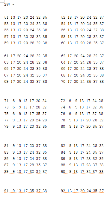 - 20개 : 1 4 6 7 9 11 12 14 15 16 19 20 21 23 24 26 27 35 36 43