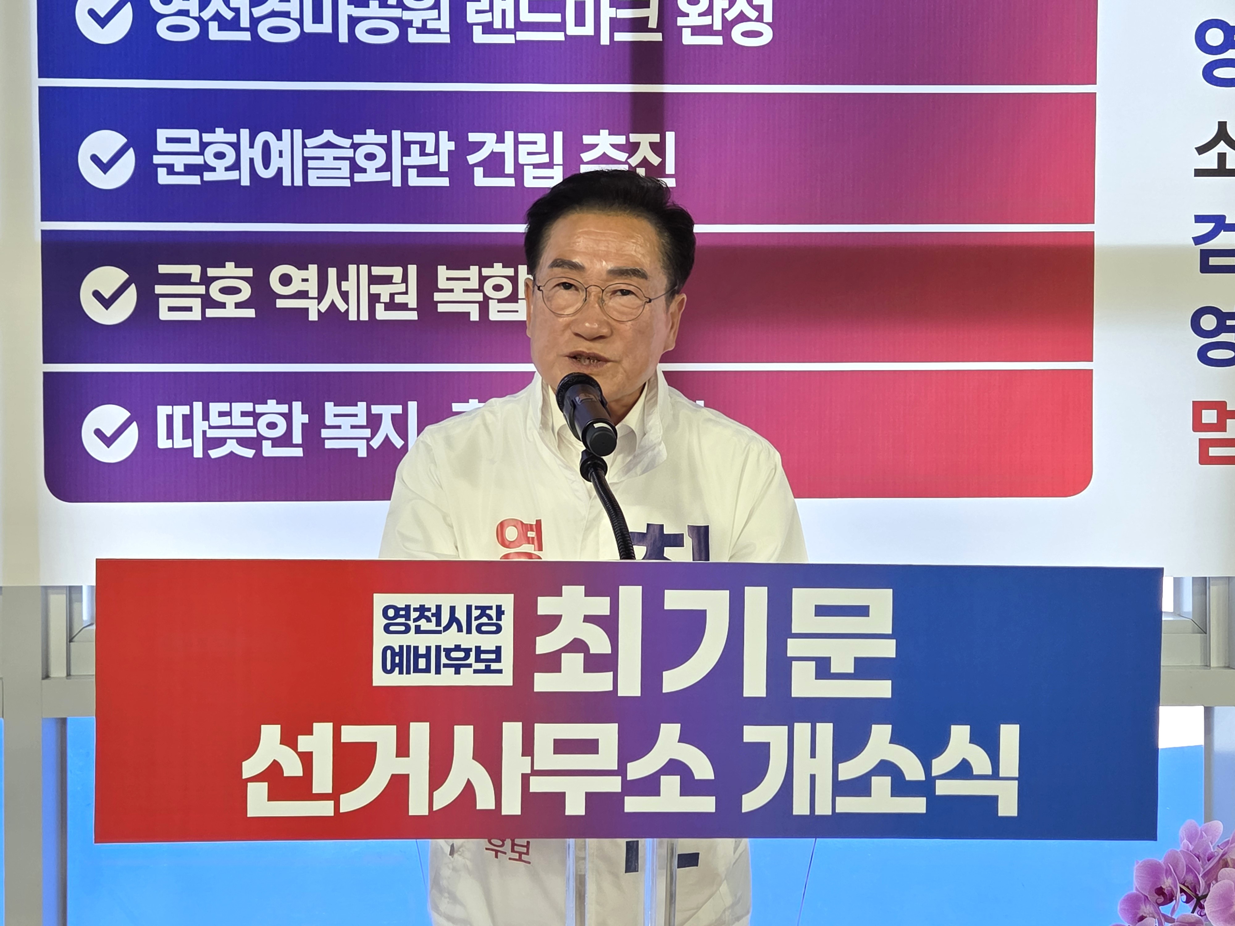 최기문 영천시장 예비후보가 27일 오후 2시, 영천시 호국로에 위치한 선거사무소에서 개소식을 열고