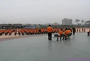 협동 배구 시작하기전 선수들이 단합을 준비하고 있다