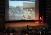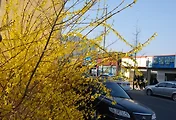 목련이 가장 일찍핀 화룡동 한 가정집 마당에 어미 바둑이가 목련을 쳐다보고 있다.