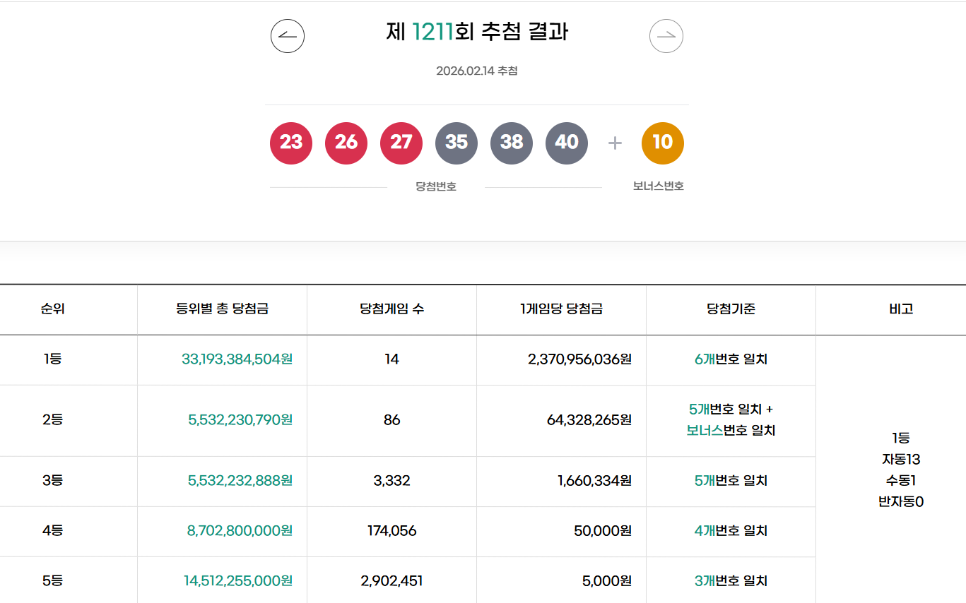 1212회 로또 당첨 예상 번호