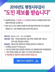 반응형 분류 전체보기33804 경북도의회 문화환경위, 경주 지진피해 문화재 점검 경북도의회 문화환경위, 경주 지진피해 문화재 점검 첨성대 및 다보탑 점검, 적극적인 지원책 마련 할 것 경상북도의회 문화환경위원회(위원장 배한철)는 9월 26일 상임위 회의 후 경주지역 지진피해 현장 문화재 점검을 실시했다. 특히, 경주지역의 대표 문화재인 첨성대 및 다보탑 지진.. 2016. 9. 27. 경북도의회, “적극적인 도민 제보를 기다립니다 경북도의회, “적극적인 도민 제보를 기다립니다” 도민과 함께하는 2016년도 행정사무감사 “도민제보” 운영 경상북도의회(의장 김응규)는 오는 11월 제289회 제2차 정례회 기간 중 실시하는 2016년도 행정사무감사를 앞두고, 도민들로부터 각종 의견과 제보를 받아 행정사무감사에 적극 .. 2016. 9. 27. 김응규 경상북도의회의장, 사드배치 관련 입장 발표 김응규 경상북도의회의장, 사드배치 관련 입장 발표 사드 북핵위협 국민생명과 재산을 지키려는 최소한의 방어수단 그러나 국가안보문제에 지역민의 일방적 희생강요는 가혹 경상북도의회 김응규 의장은 고고도미사일방어체계(THAAD. 사드) 배치의 새 부지가 성주군의 성주골프장이 유.. 2016. 9. 27. 2016 영천한약과일축제 개막 2016 영천한약과일축제 개막 9. 30. ~ 10. 3. 영천강변공원일원 영천의 대표 축제인 2016 영천한약과일축제가 오는 30일 개막행사를 시작으로 10월 3일까지 영천강변공원 일원에서 4일간 풍성하고 다채로운 테마로 열린다. 이번 축제는 ‘영험한 한약과 함께하는! 풍성한 과일의 향연! 우리가족 .. 2016. 9. 26. 시민과 함께하는 독서문화프로그램 가득 시민과 함께하는 독서문화프로그램 가득 영천시립도서관 하반기 독서문화프로그램 운영 영천시(시장 김영석)는 영천시립도서관에서 자기계발과 평생교육 활동의 기회를 제공하는 하반기 독서문화프로그램을 진행한다. 이번 하반기 독서문화프로그램은 10월 8일부터 12월 24일까지 진행.. 2016. 9. 26. 완산동 지진대피요령 경로당 순회 교육 실시 완산동 지진대피요령 경로당 순회 교육 실시 영천시 완산동(동장 김창일)은 지난 12일 경주에서 발생한 지진과 관련하여 지난 20일부터 3일간에 걸쳐 관내 경로당을 순회하며 지진 대피 요령 교육을 실시했다. 완산동 직원들은 경로당을 방문하여 경주 지진 발생 후 계속되는 여진으로 인.. 2016. 9. 26. 이전 1 ··· 2927 2928 2929 2930 2931 2932 2933 ··· 5634 다음