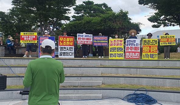 8월 8일 일부 시민들이 공무원노조의 의장사퇴 요구와 관련해 영천시청 앞에서 집회를 열고 영천시청 공무원노조와 영천시장을 성토했다. 이들은 ‘영천시청 노조간부 관용차량 음주운전 누가 주는 특혜인가’ ‘노조간부 음주운전 살인운전 방관하는 영천시장 각성하라’ ‘영천시장 공무원노조 불법 위법 어깨동무 영천시민 분노 한다’ 등의 피켓을 들고 시위를 벌였다.