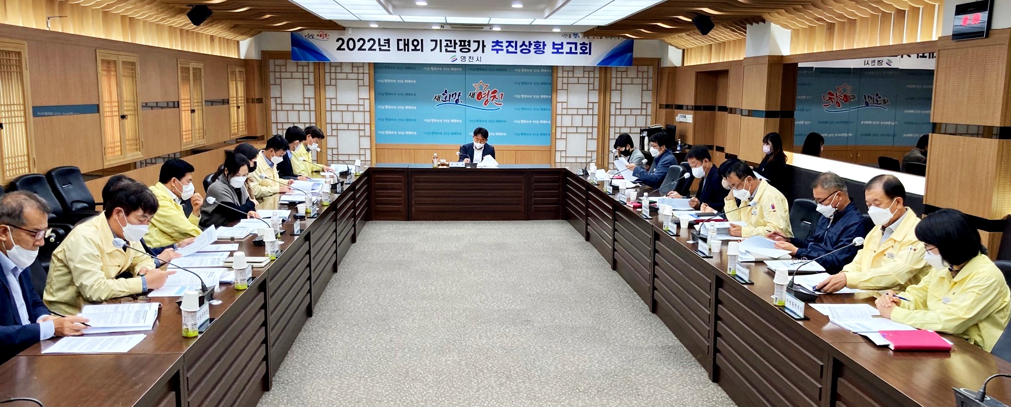 영천시는 10월 27일 시청 영상회의실에서 설동수 부시장 주재로 2022년 대외 기관평가 담당 부서장 18명이 참석한 가운데 평가 대비 추진상황 보고회를 가졌다.