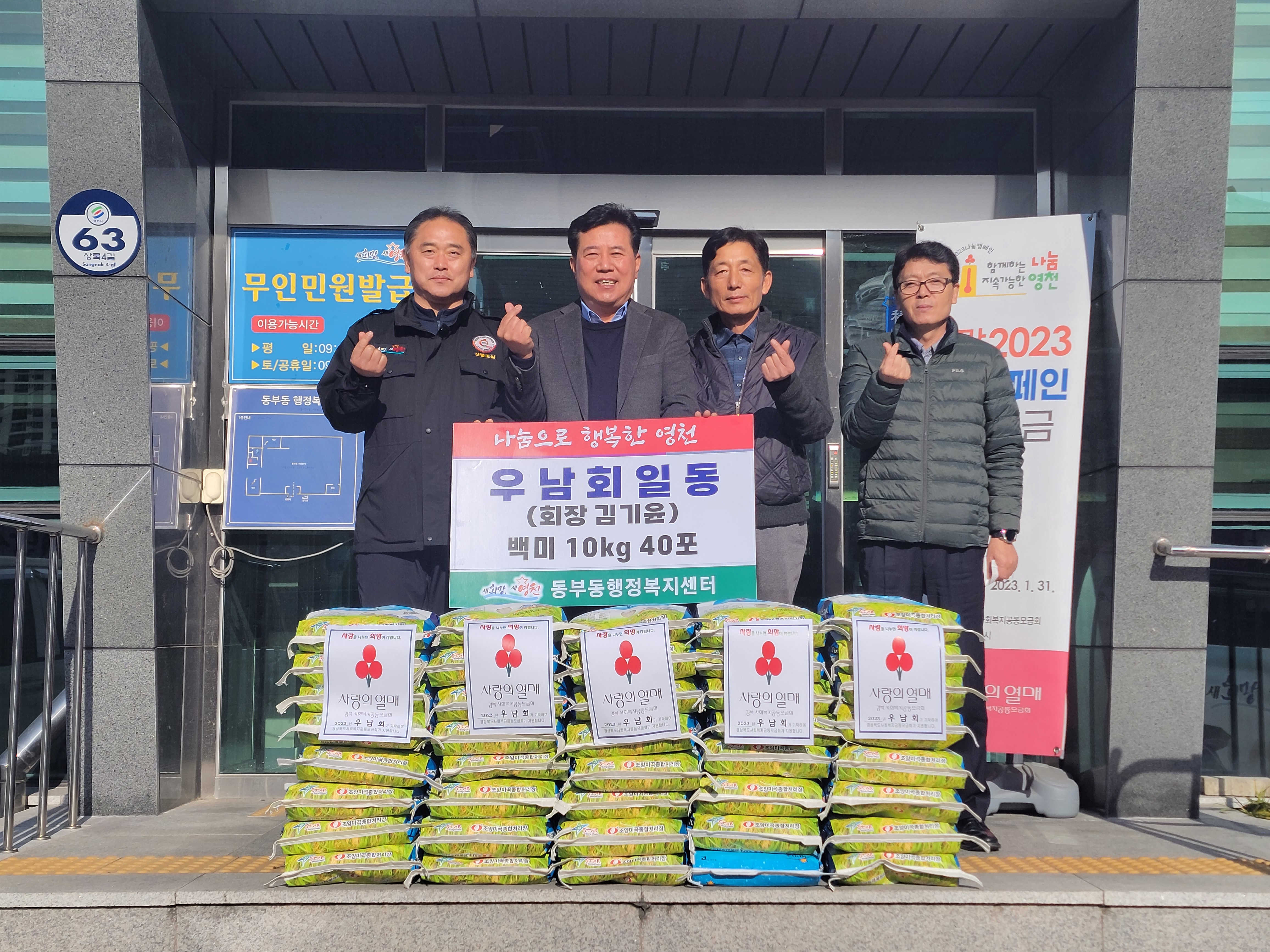 우남회(회장 김기윤)는 1월 26일 영천시 동부동 행정복지센터에 백미 10kg 40포를 기부했다.