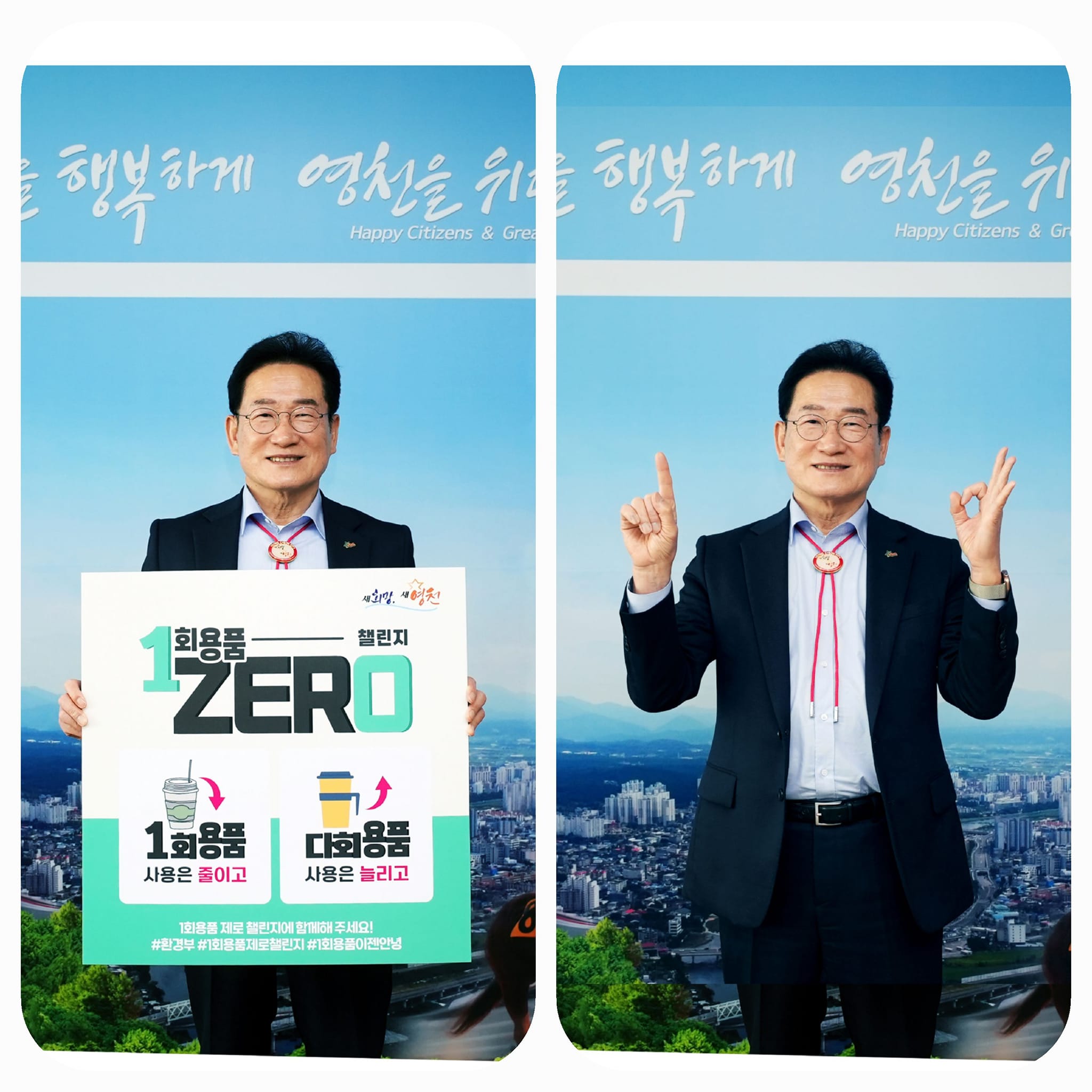최기문 영천시장은 3월 16일 ‘1회용품 제로 챌린지’ 첫 주자로 나섰다.