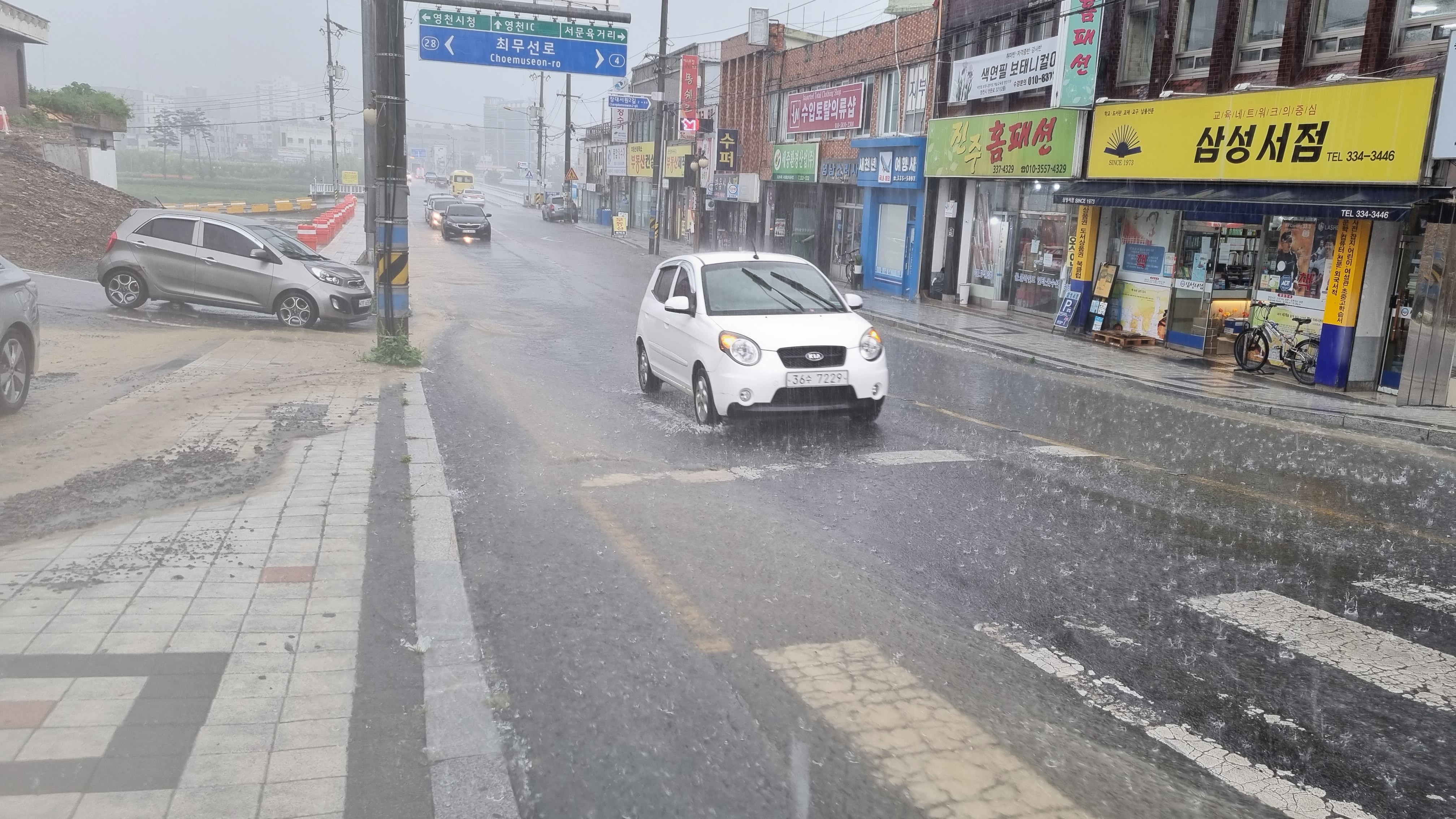 이바람에 다니던 차량은 대부분 거북이 운행을 하거나 한족에 세워 장대비 그치기를 기다렸다.