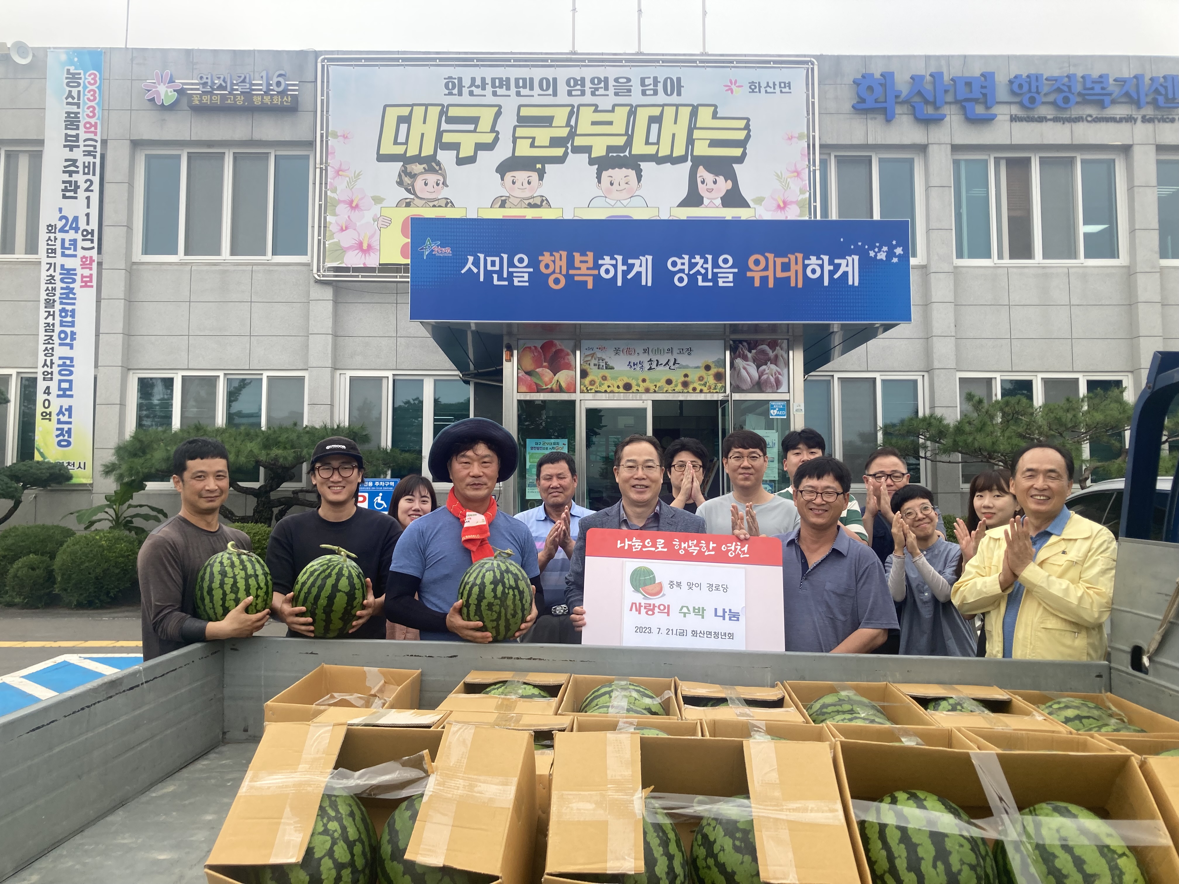 화산면 청년회(회장 권재혁)는 7월 21일 중복을 맞아 청년회 임원들과 함께 관내 경로당에 ‘사랑의 수박’을 전달했다.