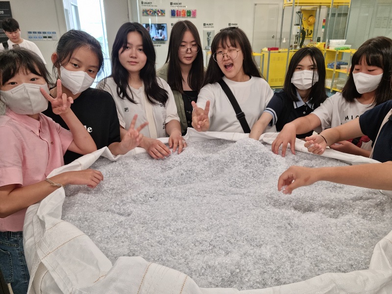 특히 고등학교는 예쁜 쓰레기 동아리 학생들이 자원 재생 교육과 함께 진로 교육을 함께 했다. 학교의 순환자원 회수 로봇 ‘네프론’을 통해 회수된 패트병이 플레이크로 가공되는 전체 과정을 이해하며 환경 보호의 소중함을 실감하고 실천 의지를 높이는데 큰 교육적 효과를 얻는 활동이었다.