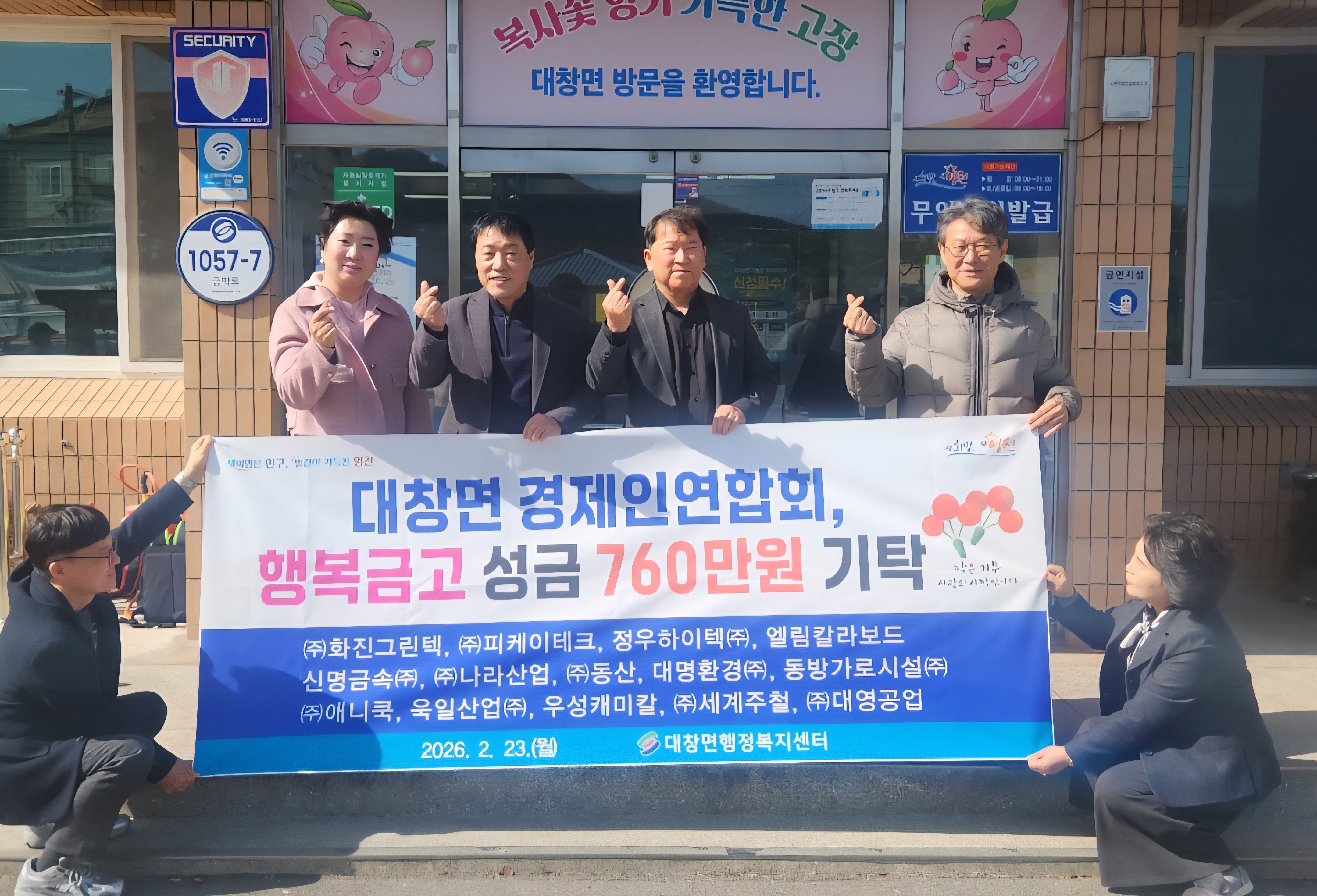 대창면에 따뜻한 소식이 전해졌습니다. 지역 기업인들이 한마음으로 뜻을 모아 어려운 이웃을 위한 성금을 기탁했다는 훈훈한 이야기입니다.