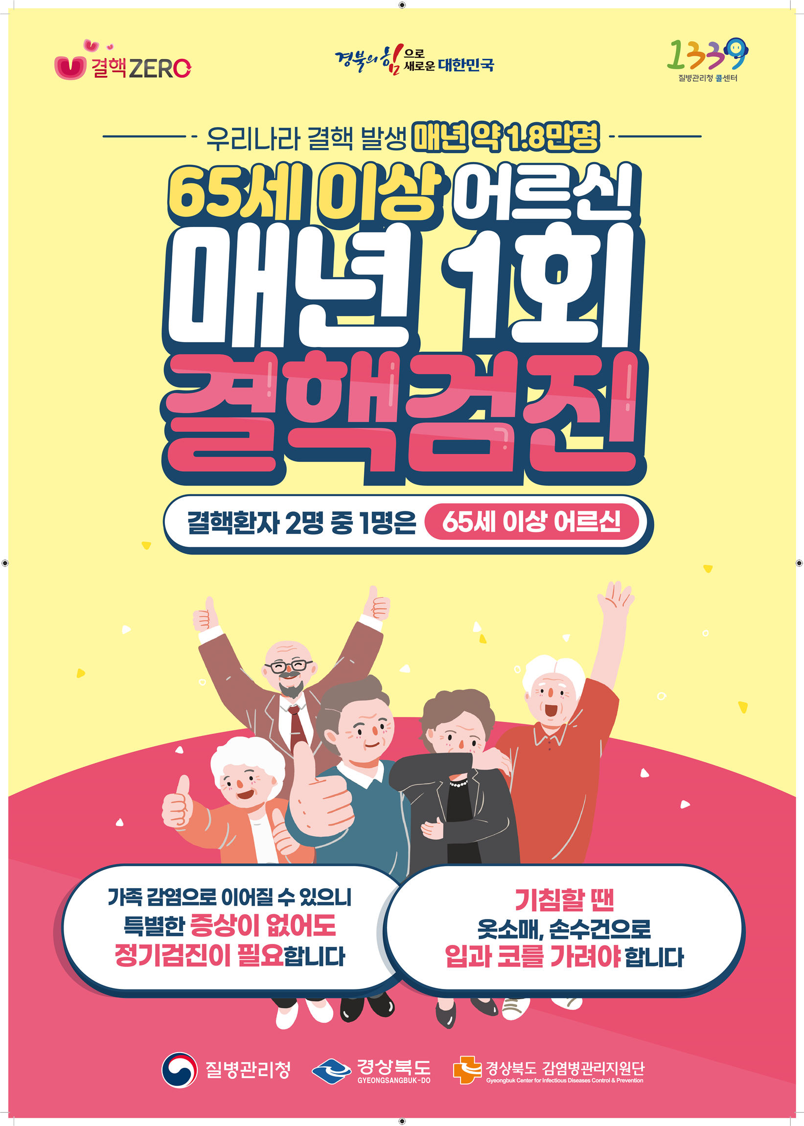 경북도는 24일 ‘제13회 결핵예방의 날’을 맞아 전 시군과 함께 결핵 예방과 검진의 중요성을 홍보하기 위한 캠페인을 실시한다고 밝혔다. ‘2주 이상 기침하면 결핵검진’이란 슬로건으로 결핵예방주간(3.18.~3.24.) 동안 도내 25개 보건소를 중심으로 전통시장, 노인복지시설, 지역 번화가 등에서 결핵에 대한 인식개선과 사회적 분위기를 조성하기 위해 다양한 홍보활동을 펼치고 있다. 또, 전 도민 대상으로 2주간(3.18.~3.31.) 라디오 및 신문광고 등을 통해 65세 이상 어르신들이 매년 1회 결핵검진을 받을 수 있도록 홍보하고 있다. 2021년도 기준 결핵 신환자율*은 52.2명으로 전국(35.7명)보다 높지만, 결핵 신환자 수는 1368명으로 전년도(1495명) 대비 8.5% 감소했다. * 결핵..