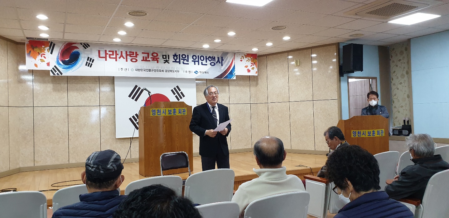 전몰군경유족회 영천시지회 나라사랑교육 “전몰군경유족회 영천시지회 나라사랑교육” 대한민국전몰군경유족회 영천시지회(지회장 장팔봉)는 11월 22일 보훈회관 4층 강당에서 대한민국전몰군경유족회 경북지부 최해암 지부장을 초청, ‘나라사랑 교육 및 회원 위안행사’를 개최했다. 김영우 시민기자 영 천 시 2022.12.07