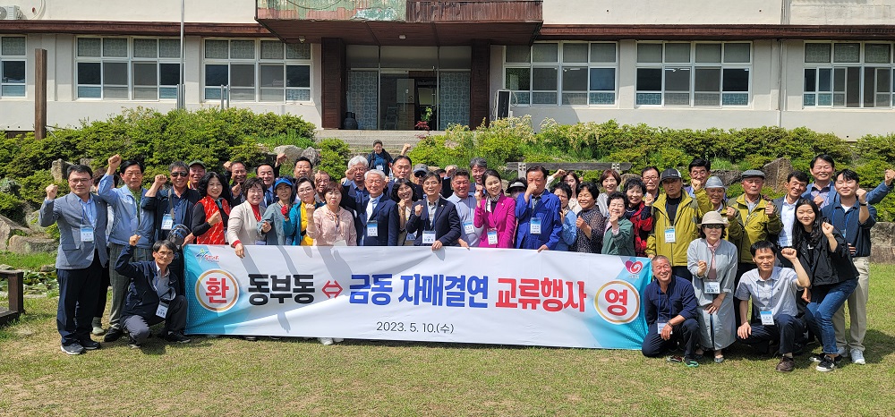 동부동·남원시 영호남 화합 대구 군부대 유치 응원 영천시 동부동(동장 김명규)은 5월 10일 자매결연 기관인 남원시 금동 주민들을 초청해 뜻깊은 행사를 가졌다. 이날 행사에는 남원시 금동 윤용한 동장과 시·도의원, 기관단체장 등 주민대표 40여 명이 참석했으며 동부동에서는 김명규 동장을 비롯해 시의원과 기관단체 회원 등 40여 명이 자리를 함께했다. 금동 방문단은 오전 일정으로 보현산댐 짚와이어 및 인도교 체험, 보현산댐 전망대를 관람했으며 오후에는 보현자연수련원에서 상견례 및 오찬을 하고 임고 선원마을 고택 등을 둘러보며 화합과 소통의 시간을 가졌다. 또한 양 지역 간 우호 관계를 증진하고 상생발전을 위해 고향사랑기부금을 상호 전달하는 한편, ‘대구 군부대는 영천으로’ 구호를 다 함께 외치며 대구 군부..