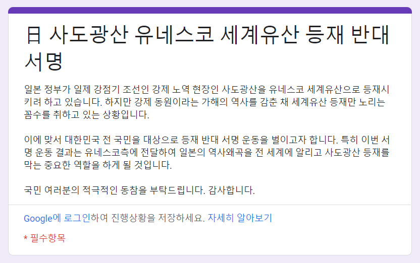 10만 누리꾼 "사도광산 세계유산 안돼"..서경덕, 유네스코 전달 일본의 역사왜곡을 전 세계에 꾸준히 고발해 온 서경덕 성신여대 교수가 이번에는 사도광산 세계유산 반대 서명 결과를 유네스코에 보냈다고 7일 밝혔다. 지난 한달간 진행된 이번 온라인 서명 운동에는 국내 누리꾼 및 재외동포, 유학생 등 10만 여명이 동참했으며 서명 결과와 사도광산 관련 서한을 메일로 전달했다. 이번 메일은 유네스코 사무총장 및 세계유산센터장, 유네스코 190여개 회원국, 세계유산위원회 21개 위원, 국제기념물유적협의회(ICOMOS) 전 회원국 대표 메일로 발송했다. 서명 운동을 추진한 서 교수는 "강제동원이라는 가해의 역사를 감춘 채 세계유산 등재만 노리는 일본 정부의 꼼수를 유네스코측에 제대로 알려주고 싶었다"고 전했다. ..