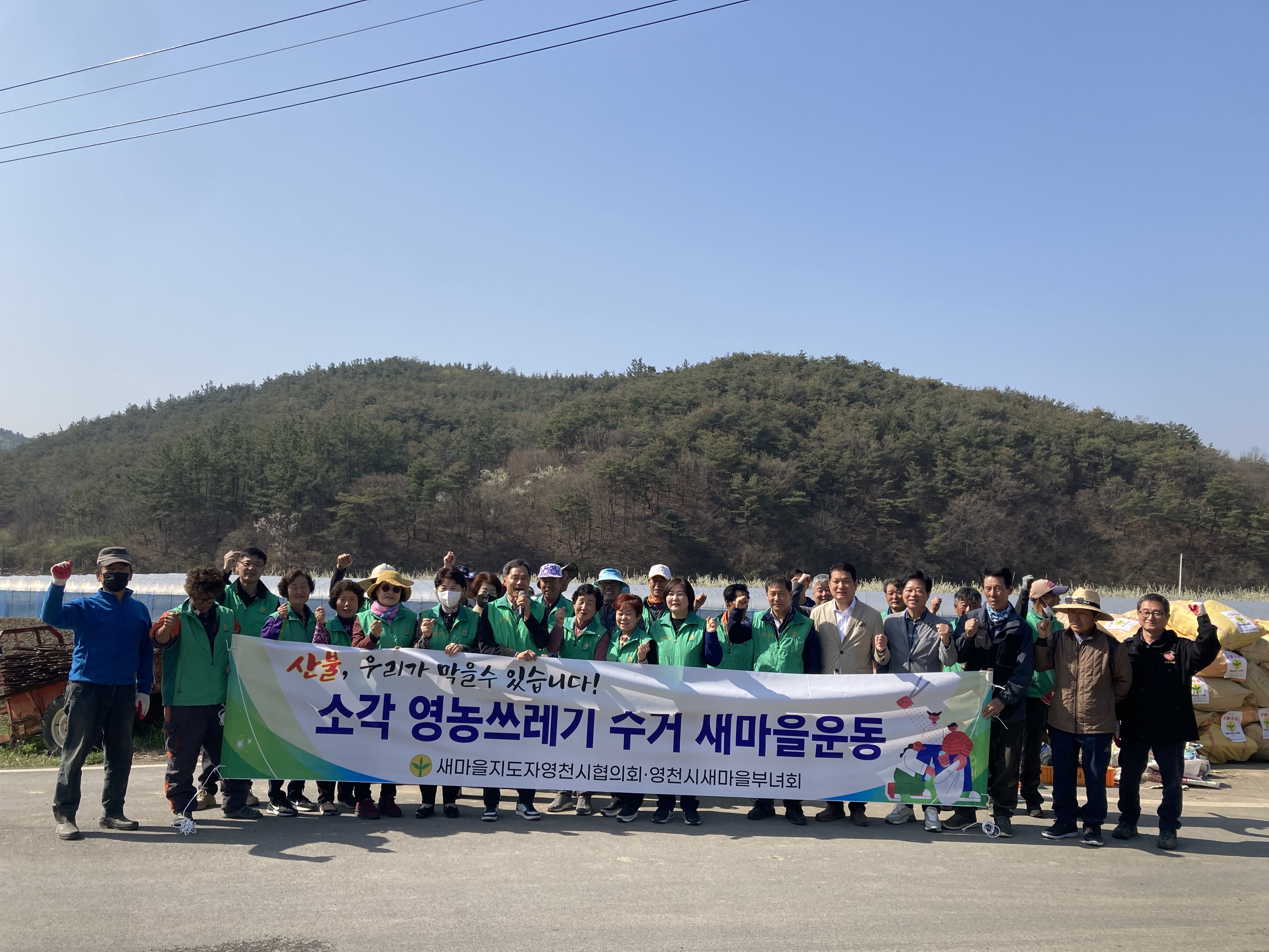 새마을단체, 봄철 산불예방 운동 새마을지도자영천시협의회(회장 이승원)와 영천시새마을부녀회(회장 최분순)는 3월 31일 고경면 오류리 일대에서 봄철 산불예방을 위한 소각 영농쓰레기 수거 새마을운동 시범 수거활동을 전개했다고 밝혔다. 이날 수거활동은 남·여 새마을지도자 및 주민, 공무원 등 50여 명이 참여한 가운데 임야에 인접한 농가를 중심으로 소각 영농쓰레기가 담긴 새마을포대를 마을 집하장으로 운반하고 전지목 파쇄 작업을 실시하는 등 소각행위 근절을 위한 활동과 함께 산불예방 홍보활동을 펼쳤다. 한세현 영천시새마을지회장은 “봄철 농번기를 앞두고 바쁘신 가운데 참여해주신 새마을지도자분들과 주민분들에게 감사드리며 앞으로도 새마을 단체가 산불 위험으로부터 안전한 지역사회를 만드는 데 앞장서겠다.”고 말했다. ..